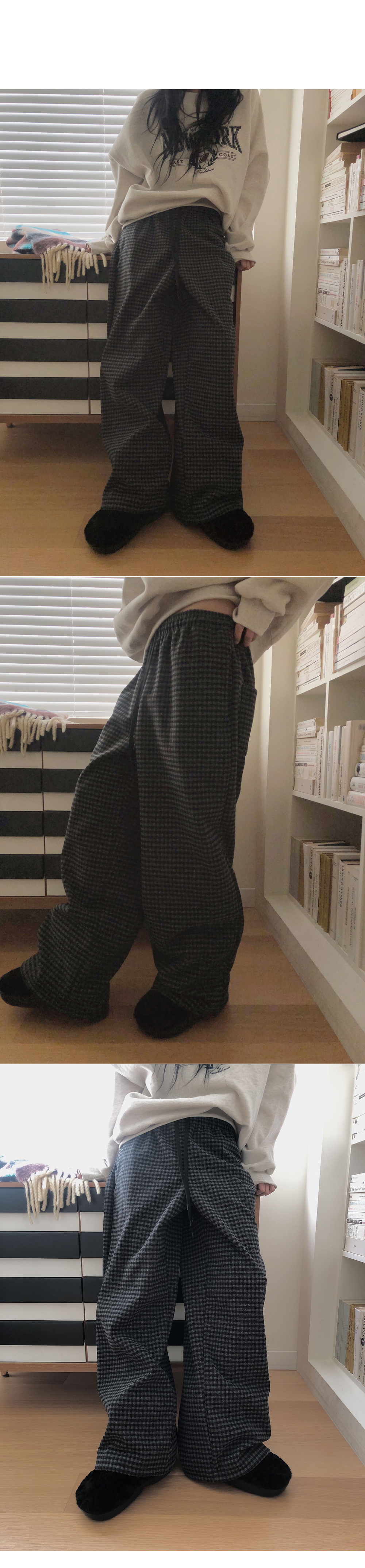 양모섬유로 제작된 소재. 도톰한 두께감과 단단하여 비침이 없는 원단. 겨울에 입는 소재.