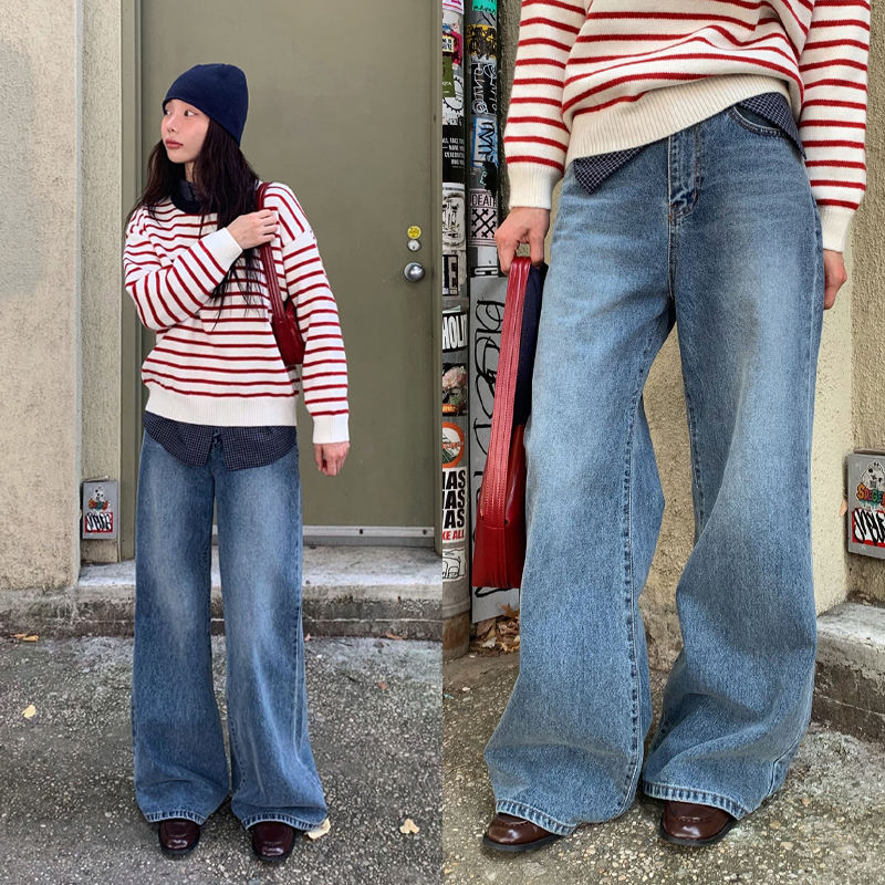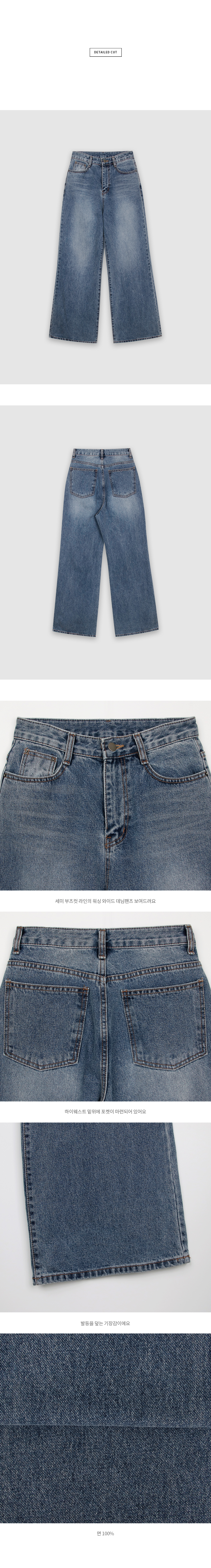 # 세미 부츠컷 라인의 워싱 와이드 데님팬츠