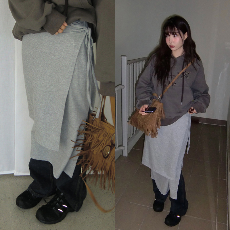 # 랩스커트 디자인의 레이어드 밴딩 롱 스커트