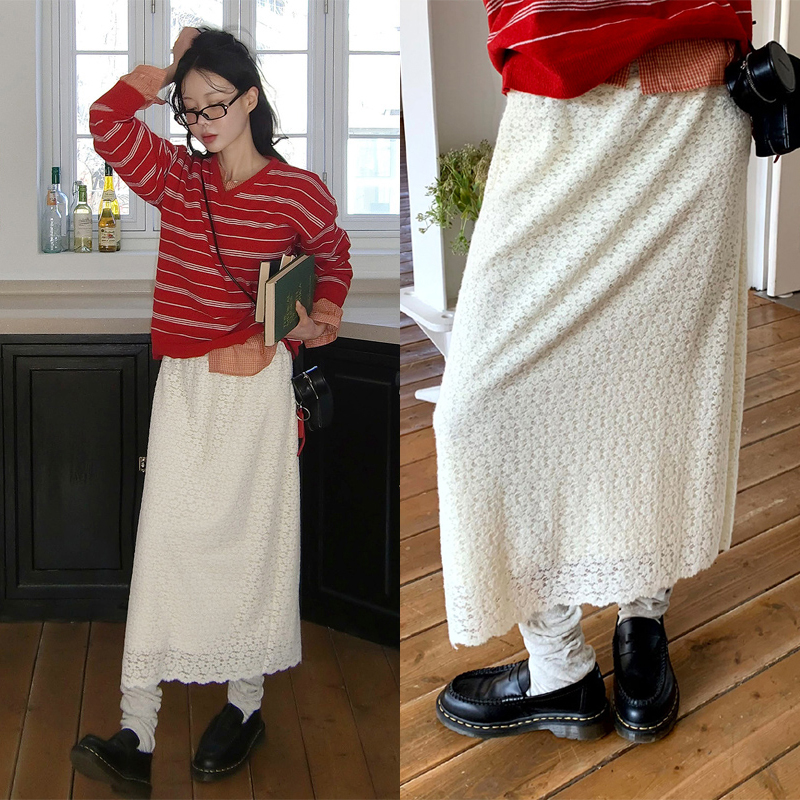 # 플라워 레이스 밴딩 롱스커트