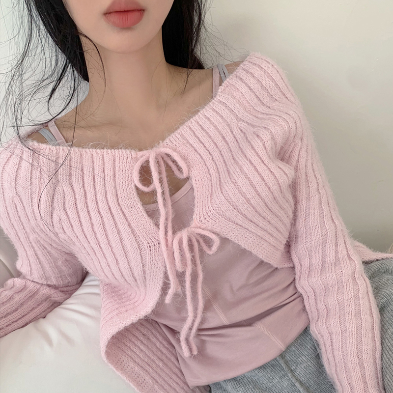 # 리본 스트랩 긴팔 가디건