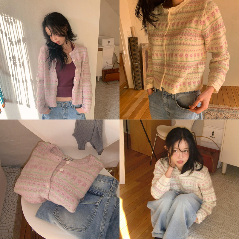 # 빈티지한 무드의 플라워 니트 가디건