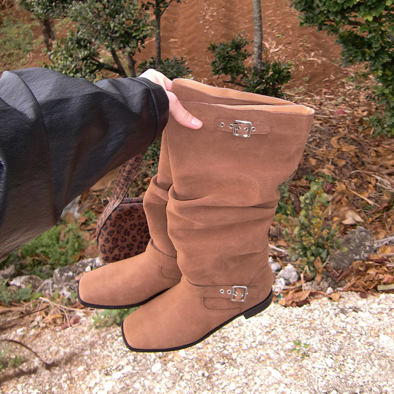 셔링주름으로 포인트를 준 벨티드부츠