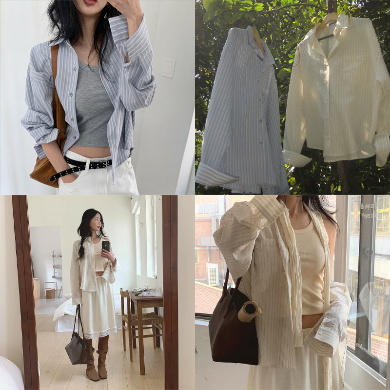 은은한 컬러감이 매력적인 알럽모코 스트라이프 루즈핏 셔츠 단독or간절기 아우터로 착용하기 좋아요♥