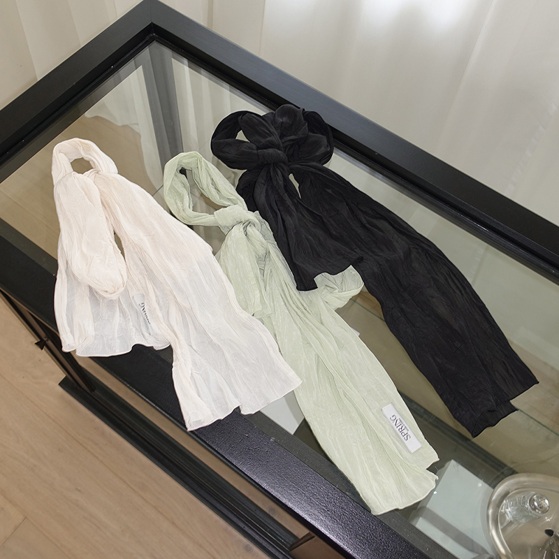 얇게 짜여진 가볍고 부드러운 견직물. 하늘하늘거리는 느낌이지만 견고한 소재.