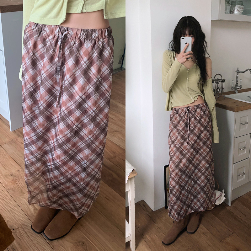 빈티지한 무드에 맥시한 기장감의 체크 스커트