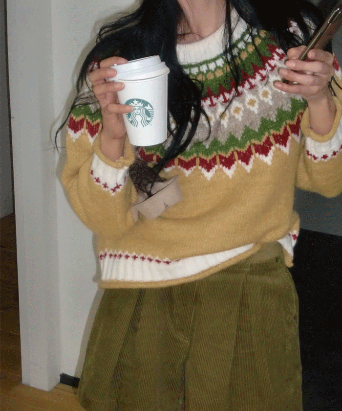 [신상5%]삐삐 노르딕 니트 #코위찬니트 #노르딕니트 #긴팔니트 #라운드넥 #오버핏니트 #겨울니트