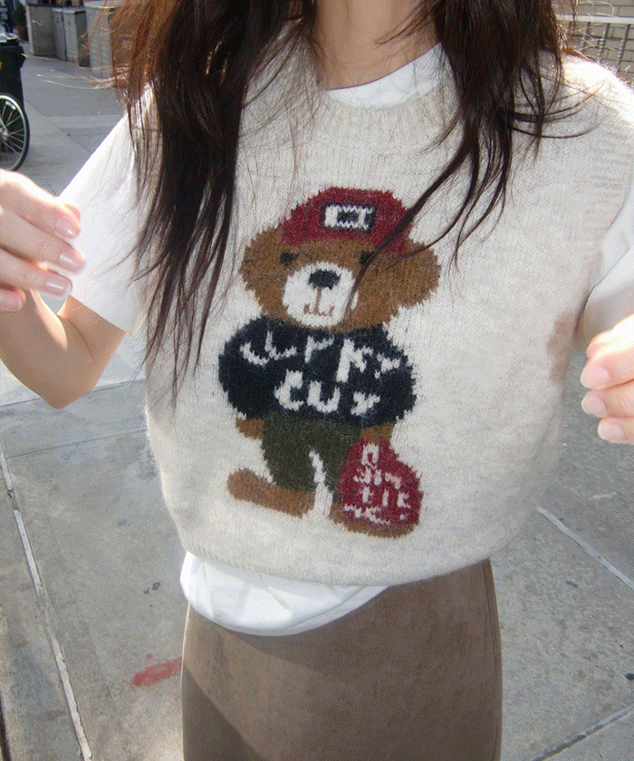 [신상5%]테디 니트 베스트 #니트조끼 #니트베스트 #오버핏베스트 #곰돌이조끼