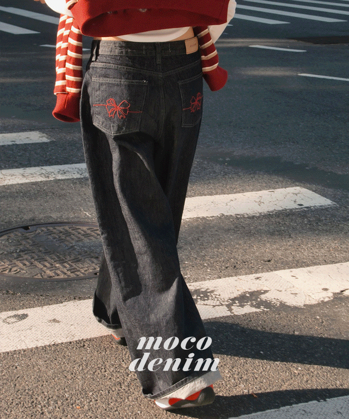 [MADE/오늘출발&무배]리본자수 논페이드 생지데님 #논페이드생지데님 #데님팬츠 #가을청바지 #와이드데님 #가을데님 #청바지 #와이드핏 #오버핏팬츠 #자수팬츠