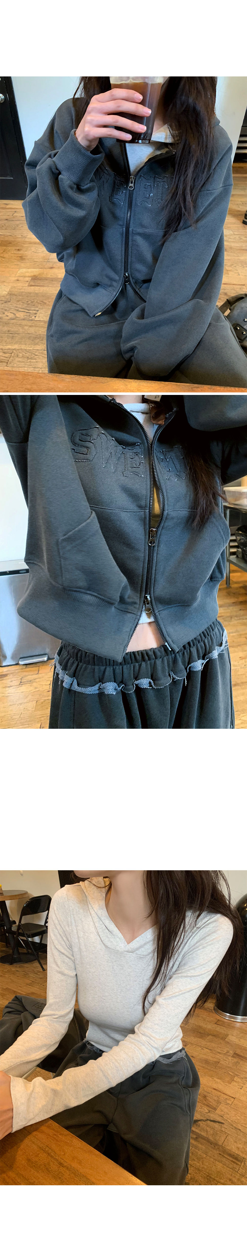 “골반은 평균이며 엉덩이가 작고 하의는 S사이즈를 입어요. 다리가 긴 편이라서 짧 은 기장감의 하의는 M사이즈도 입어요. 상의는 어깨가 있는 편이고 가슴사이즈는75C입니다.”