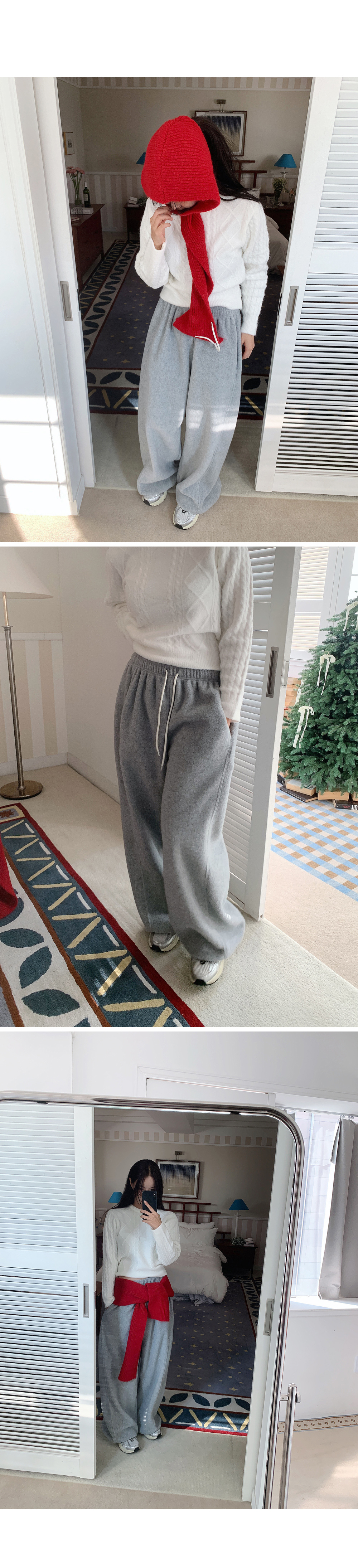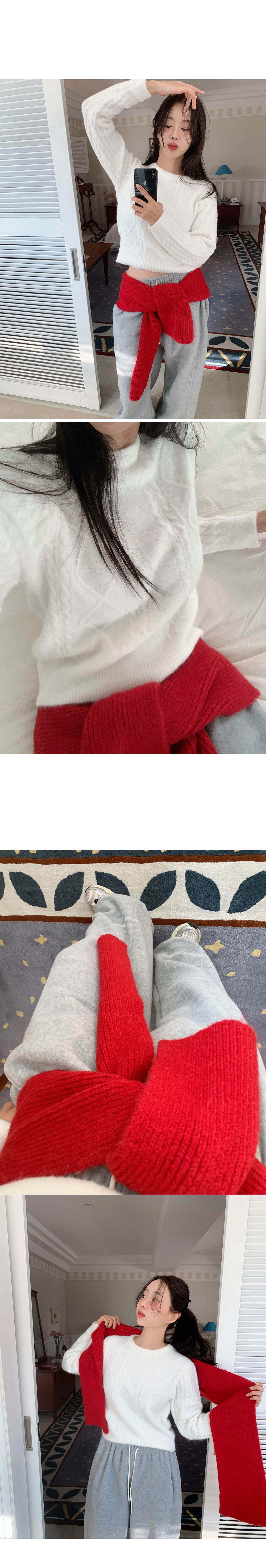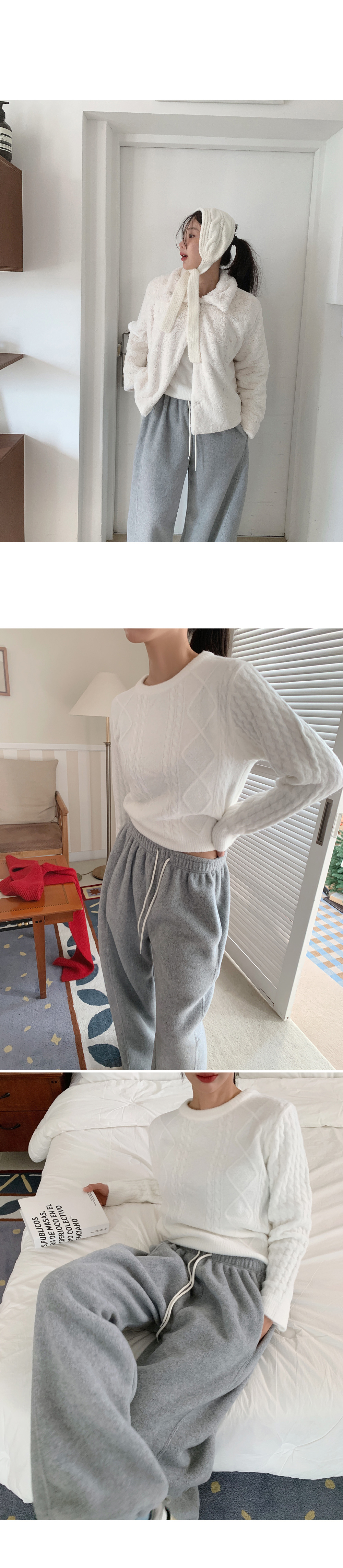 베이직하게 즐기기 좋은 보송한 라운드넥 케이블 니트