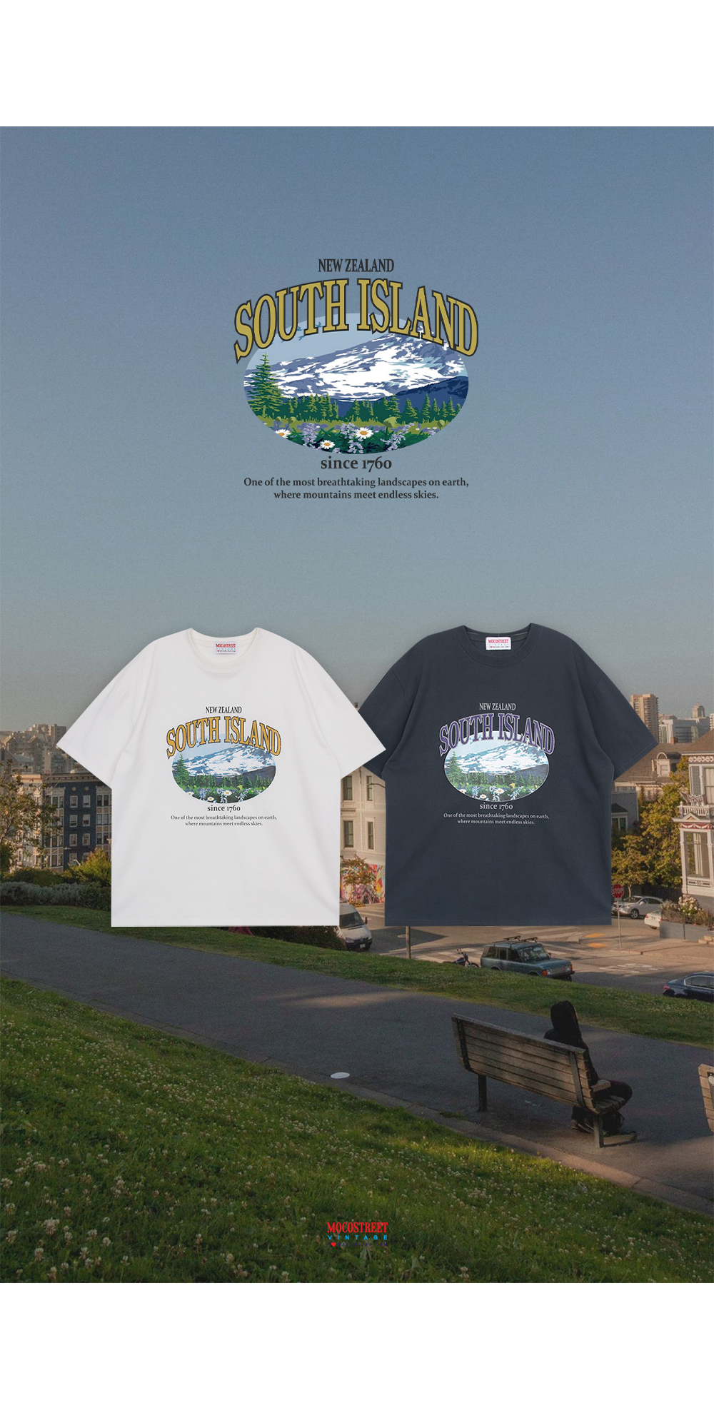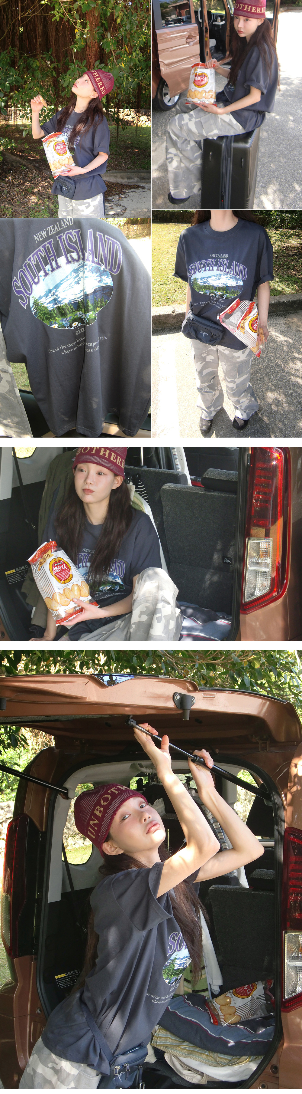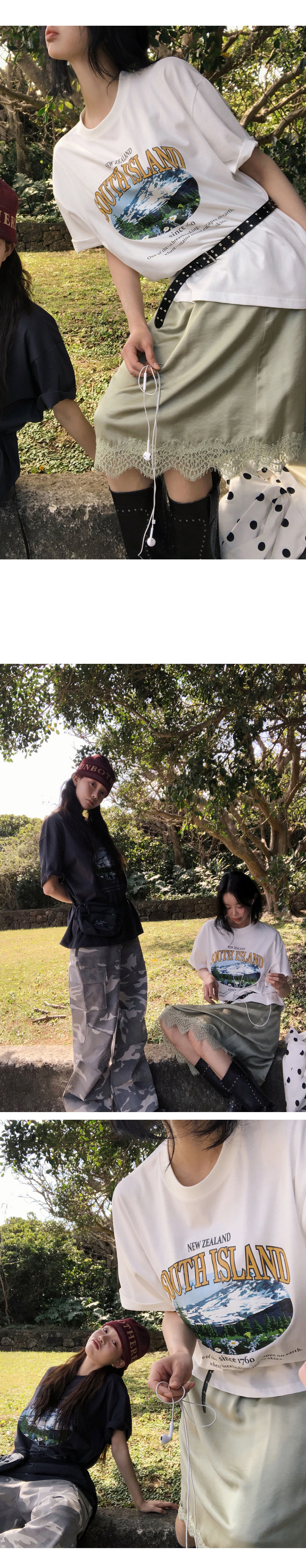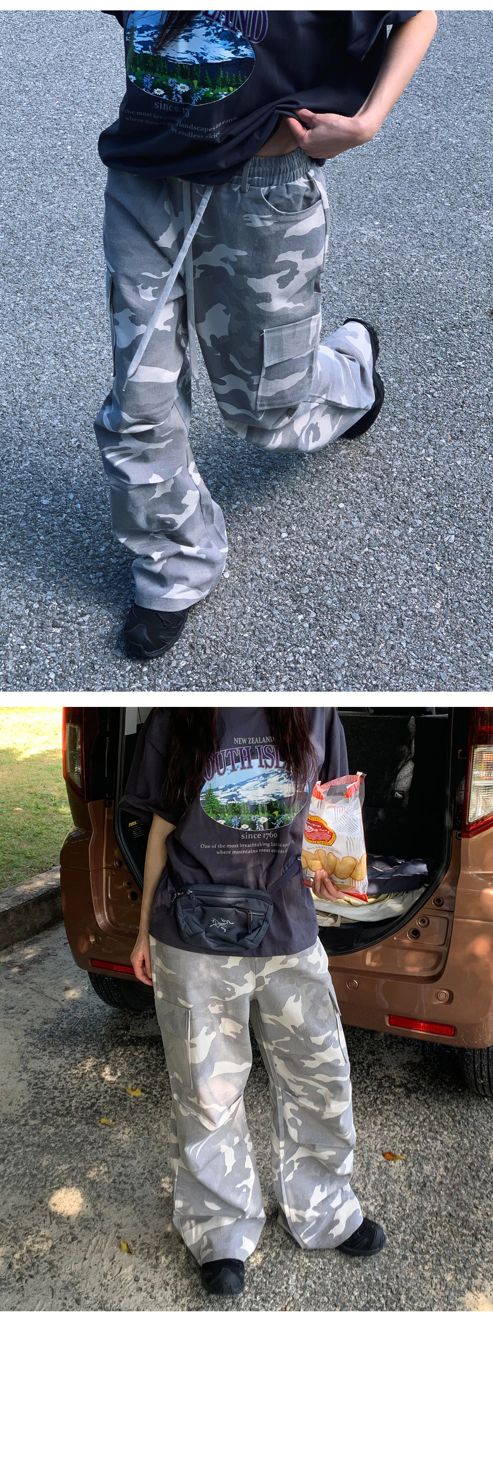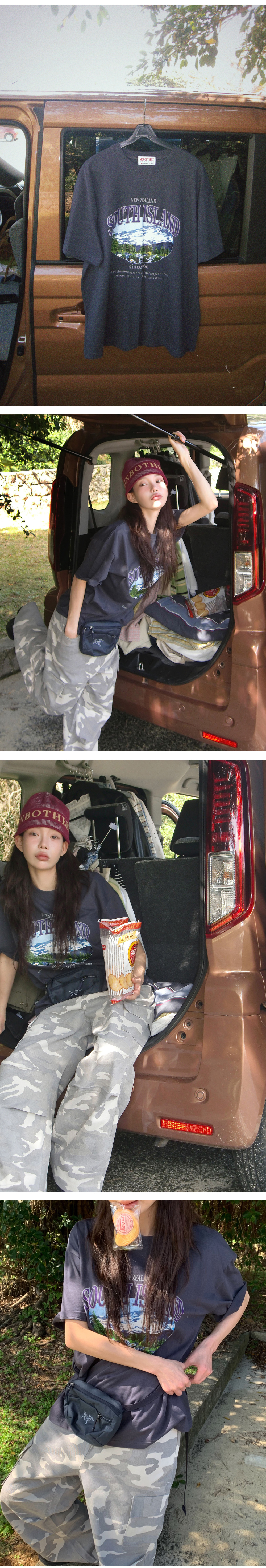데일리로 캐주얼하고 편안하게 입기 좋은 나염 포인트의 모코스트릿 루즈핏 반팔티