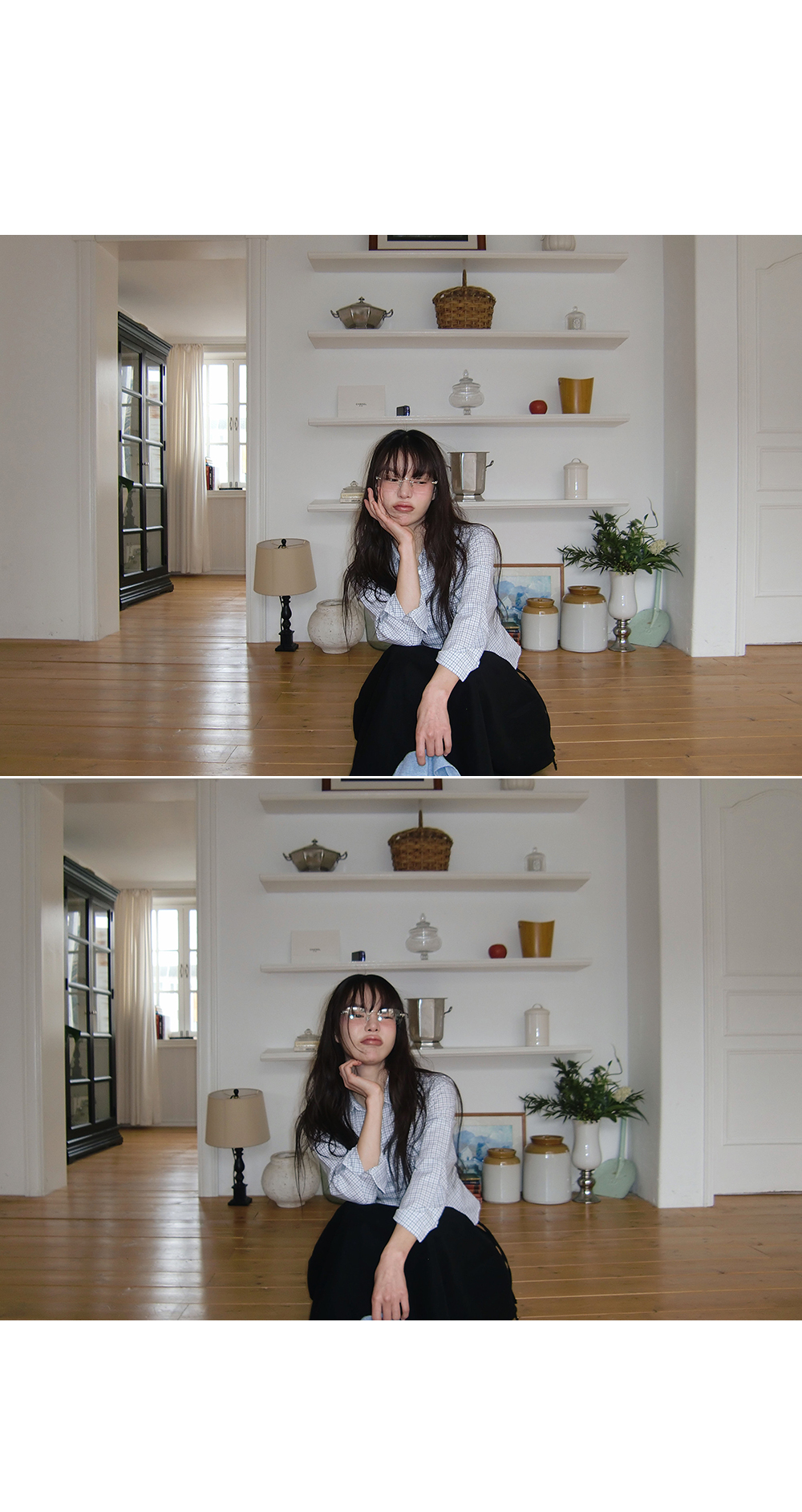“골반은 평균이며 엉덩이가 작고 하의는 S사이즈를 입어요. 다리가 긴 편이라서 짧 은 기장감의 하의는 M사이즈도 입어요. 상의는 어깨가 있는 편이고 가슴사이즈는75C입니다.”
