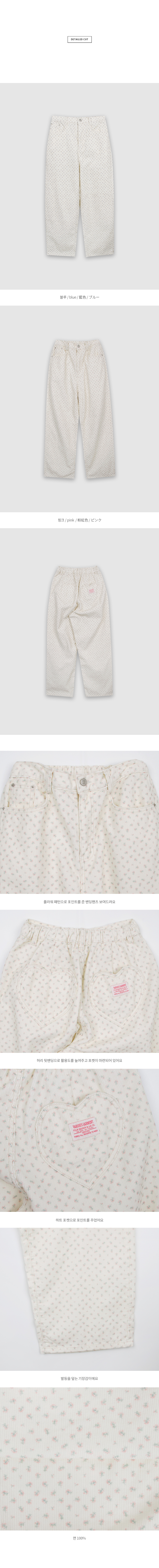 플라워 패턴으로 포인트를 준 코듀로이 원단의 밴딩팬츠