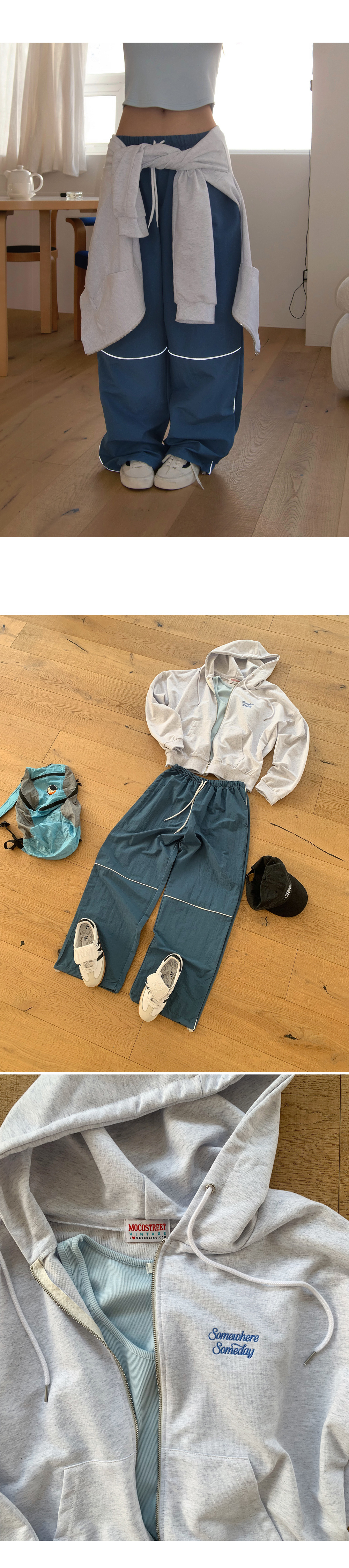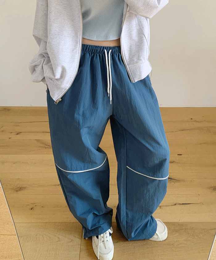 스카치 라인으로 포인트를 준 투웨이 와이드팬츠