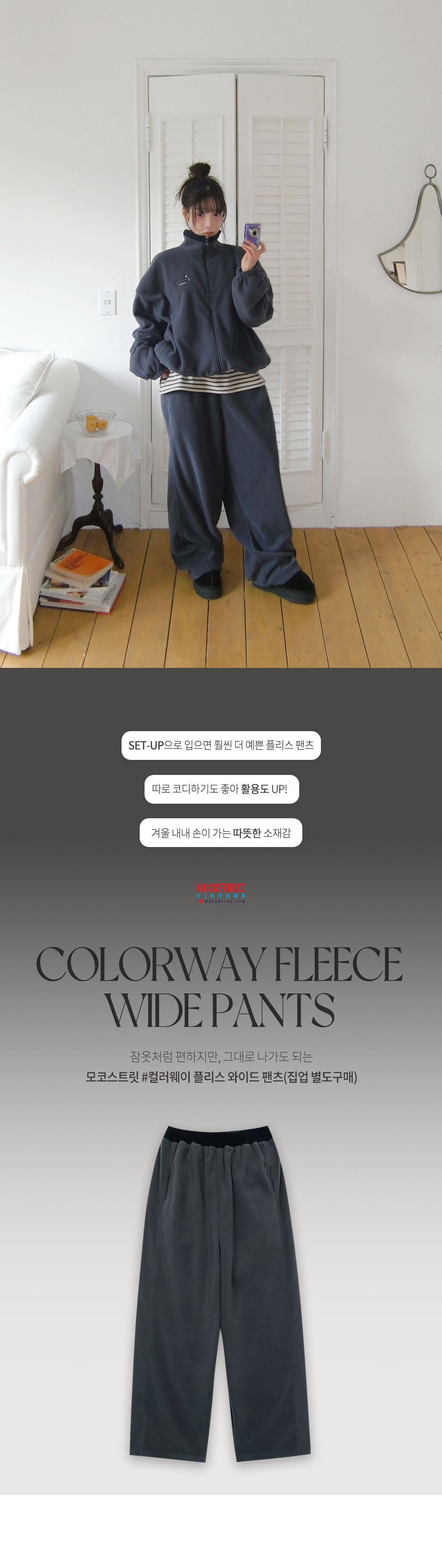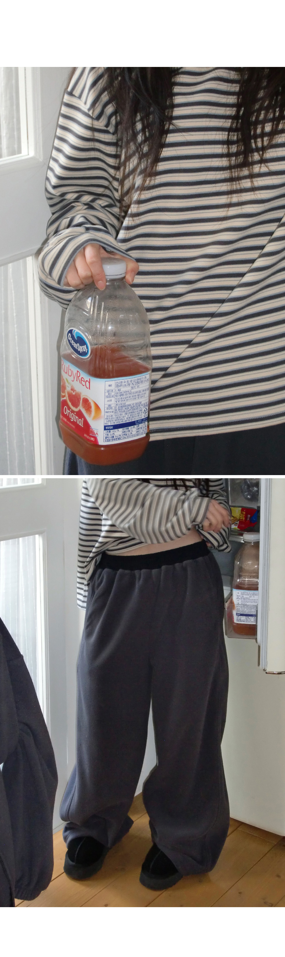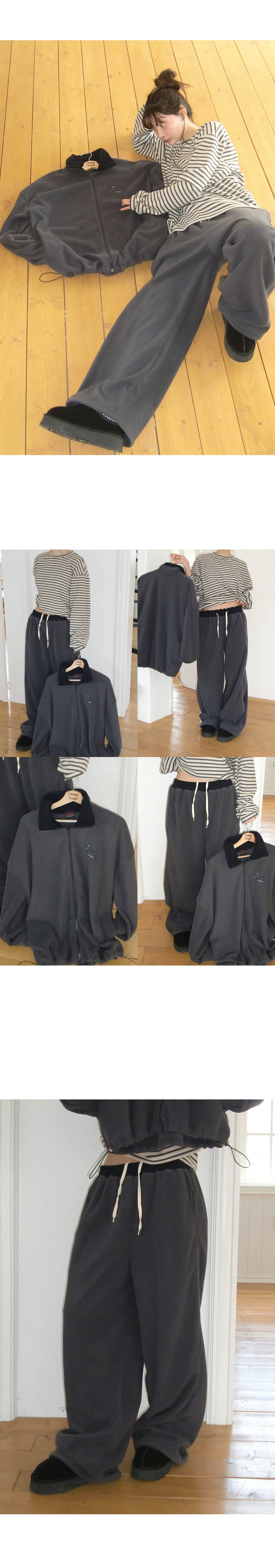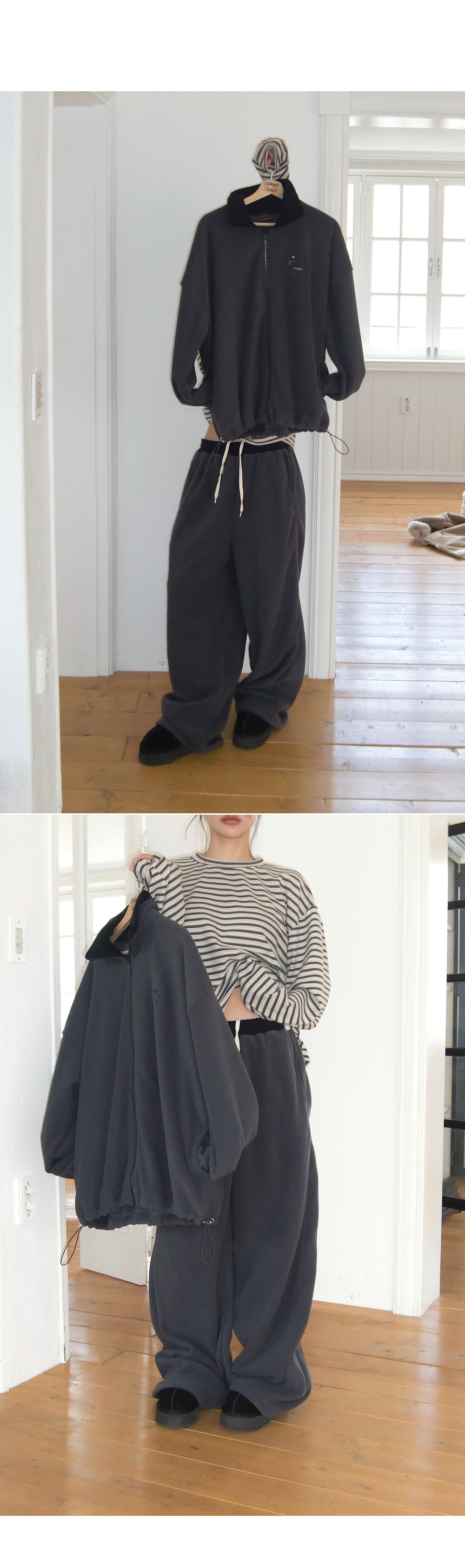 배색 컬러감의 모코스트릿 후리스 양기모 밴딩팬츠
