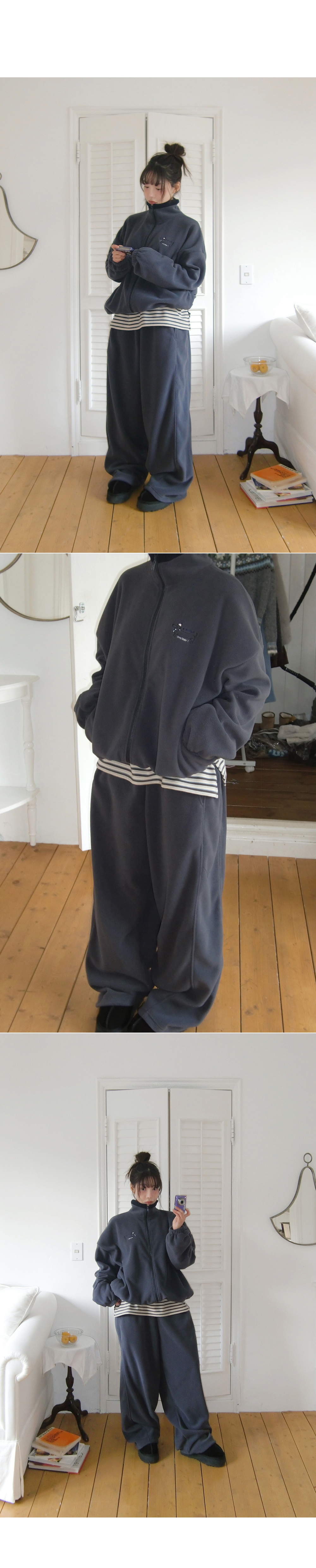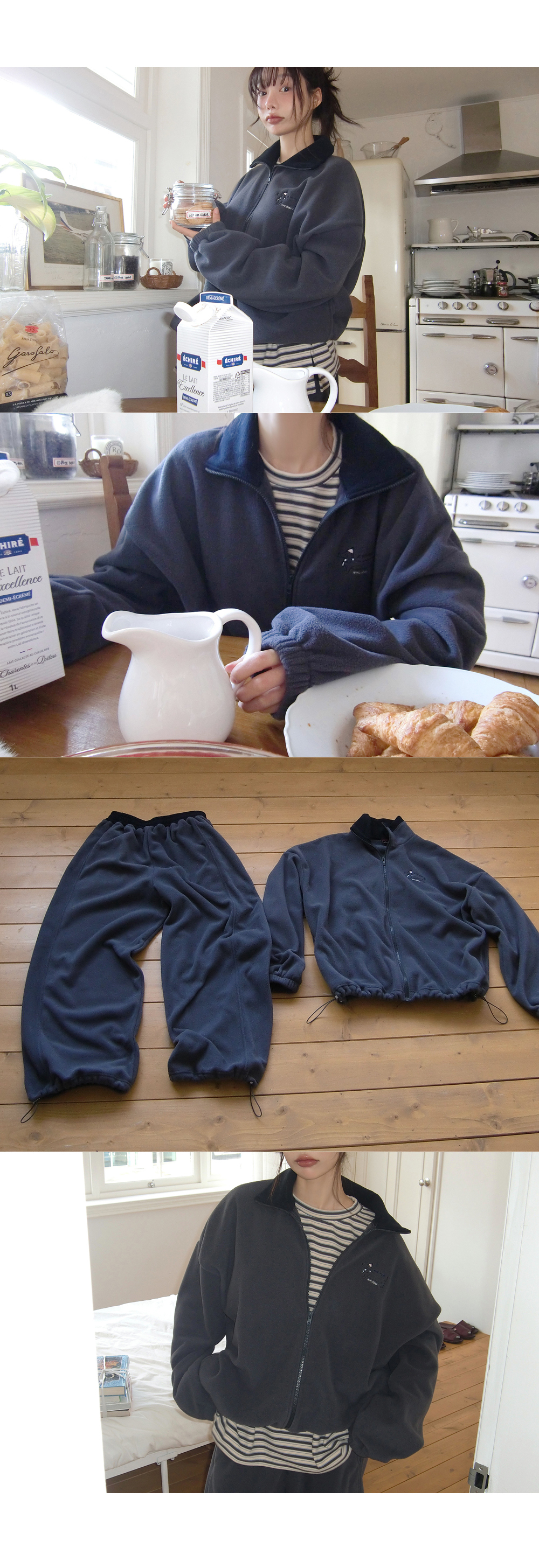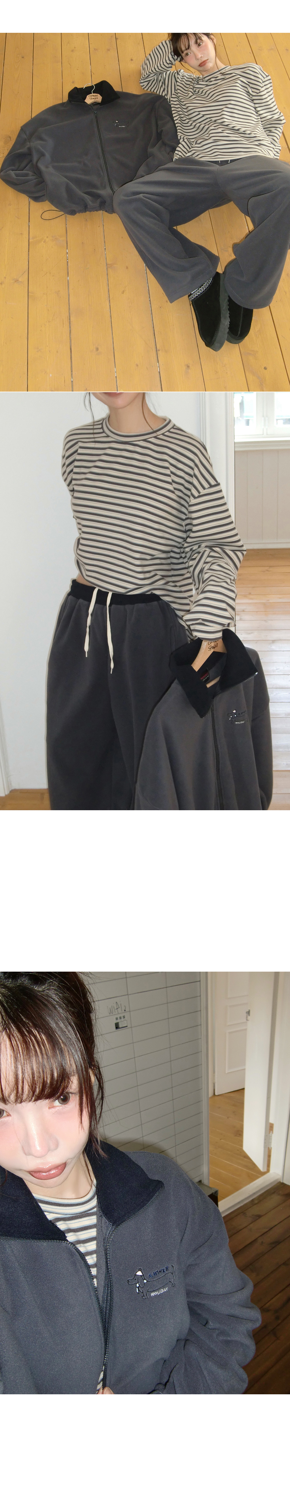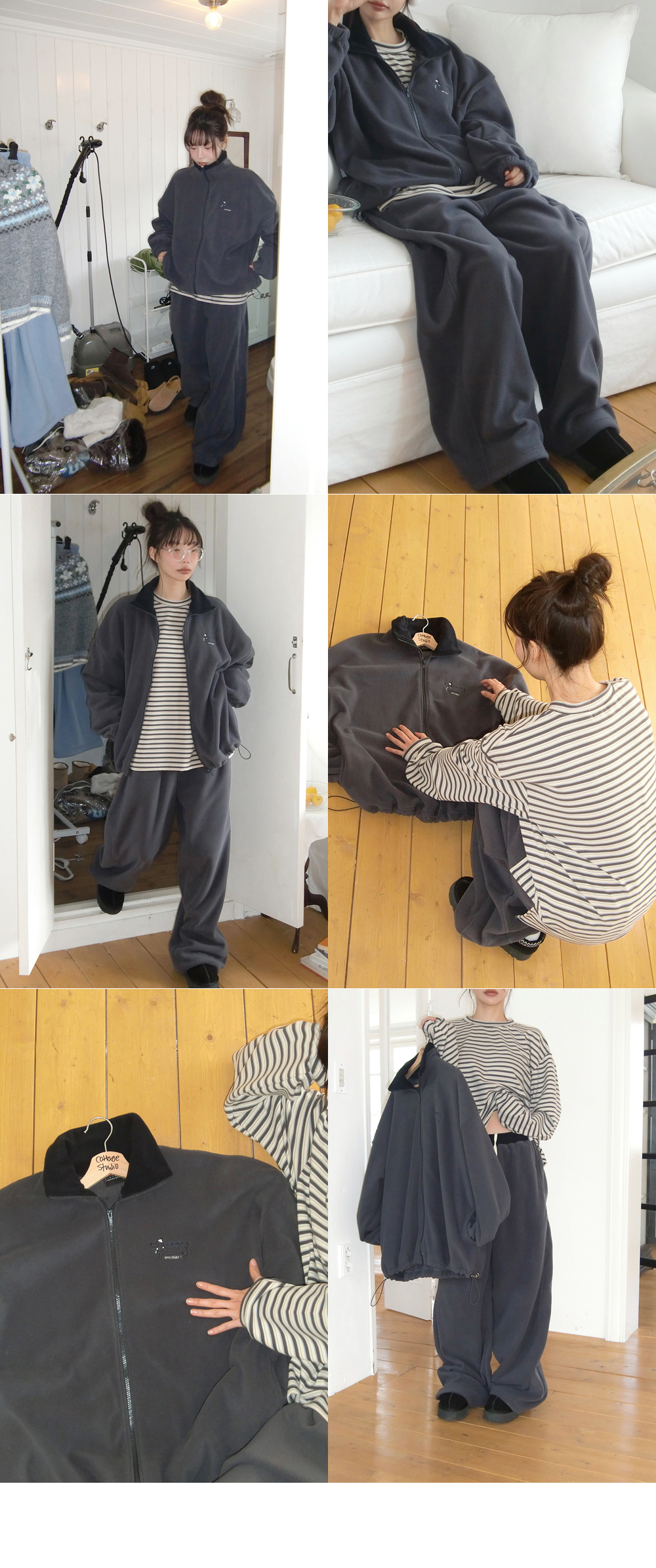 배색 컬러감의 모코스트릿 후리스 양기모 밴딩팬츠