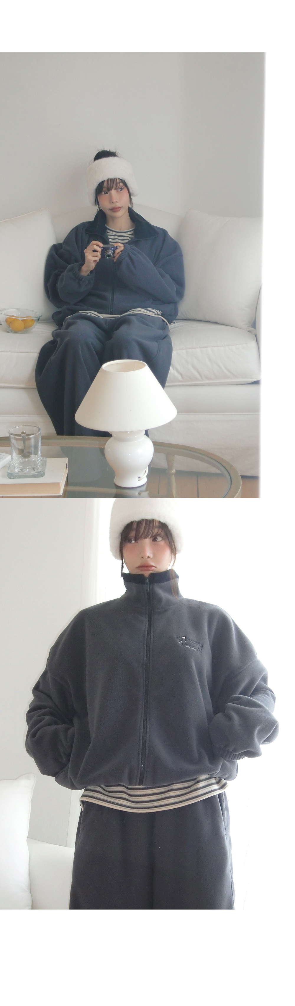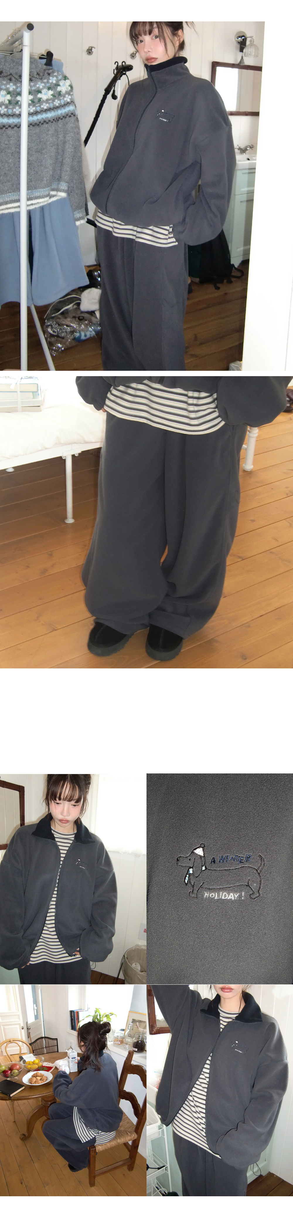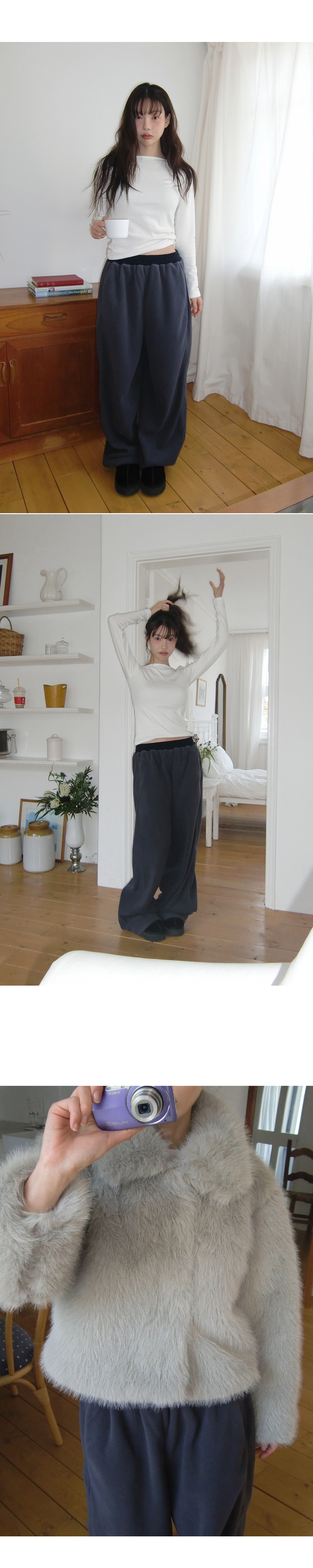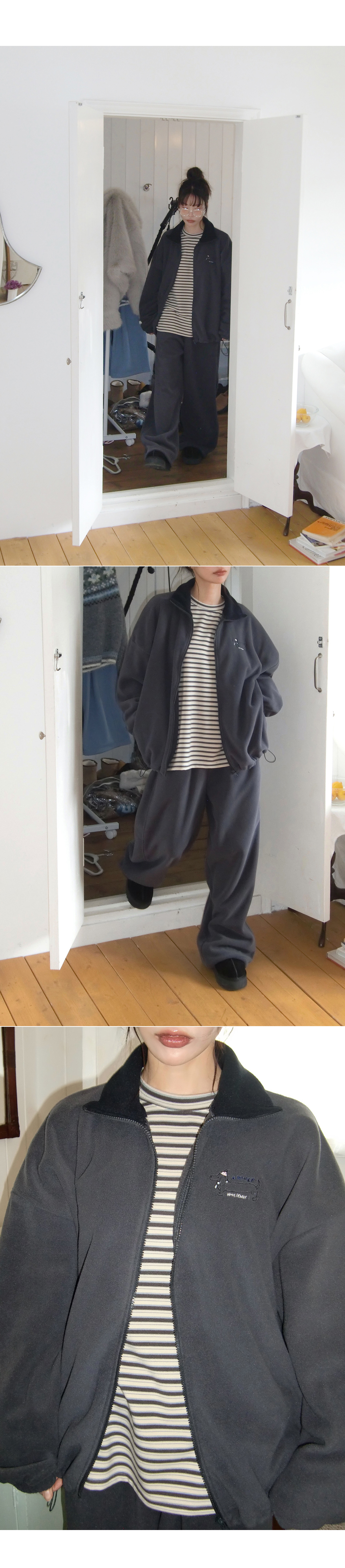 배색 컬러감의 모코스트릿 후리스 양기모 밴딩팬츠
