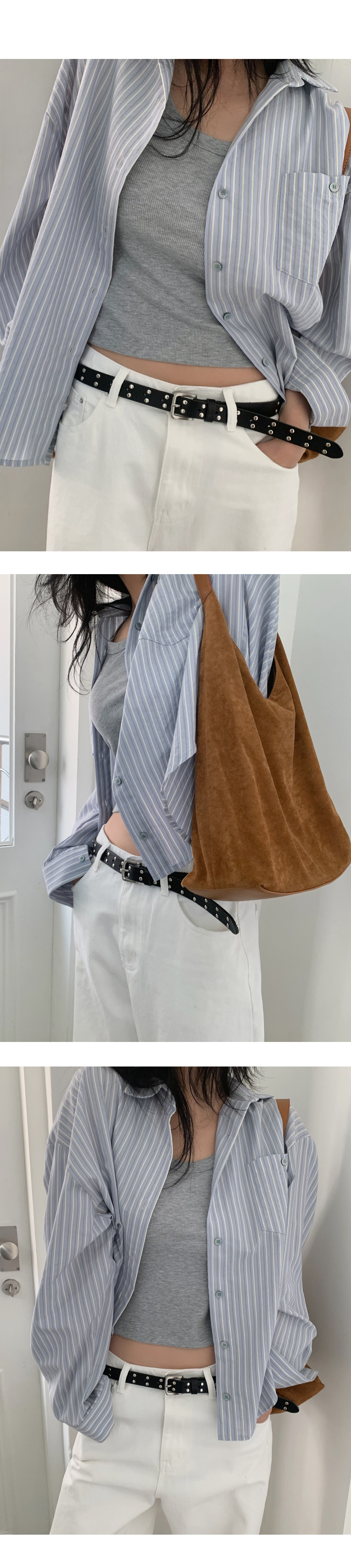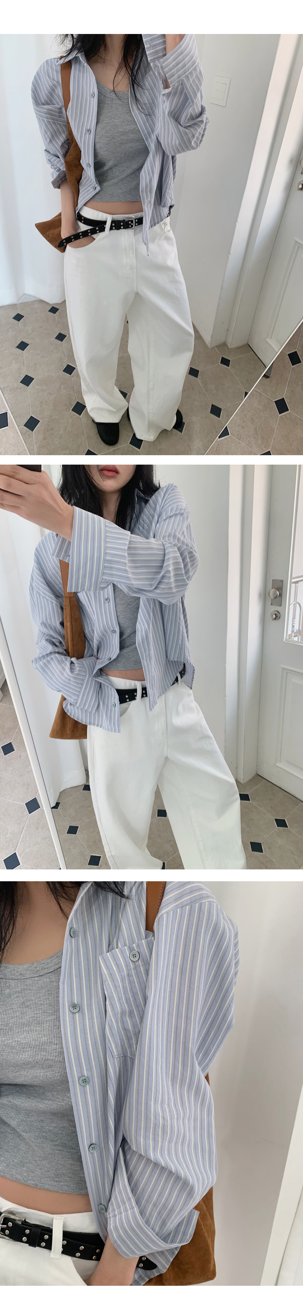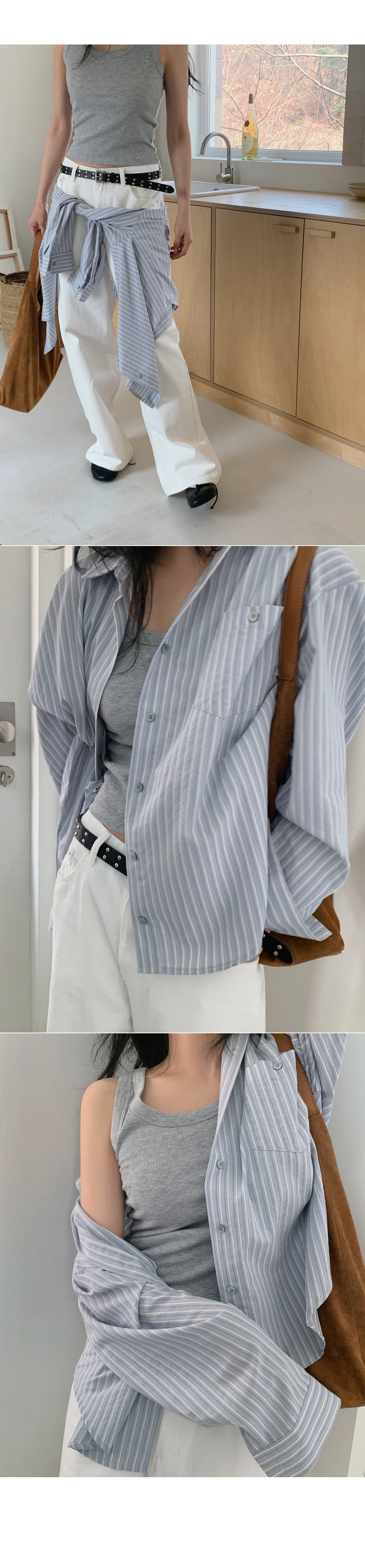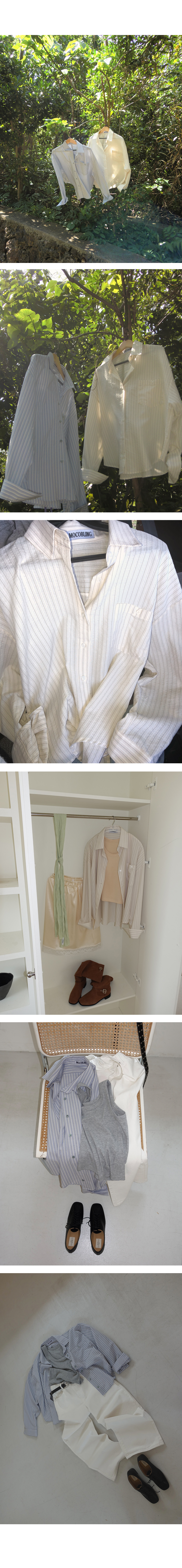 은은한 컬러감이 매력적인 알럽모코 스트라이프 루즈핏 셔츠 단독or간절기 아우터로 착용하기 좋아요♥
