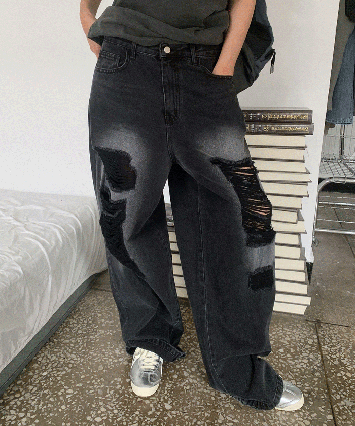 구제 디테일과 워싱으로 포인트를 준 데님팬츠