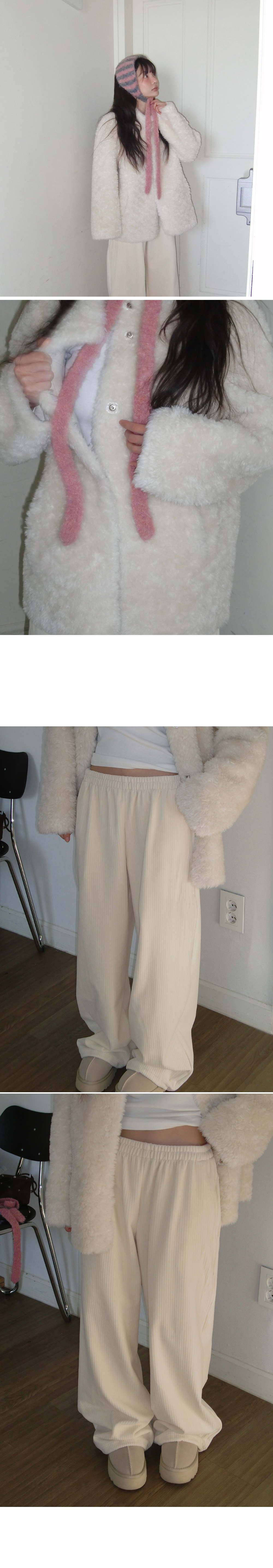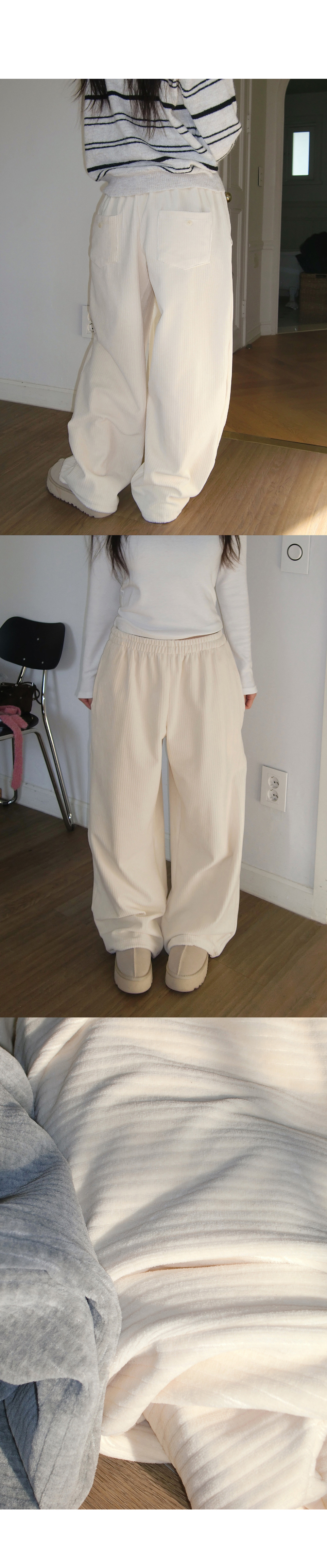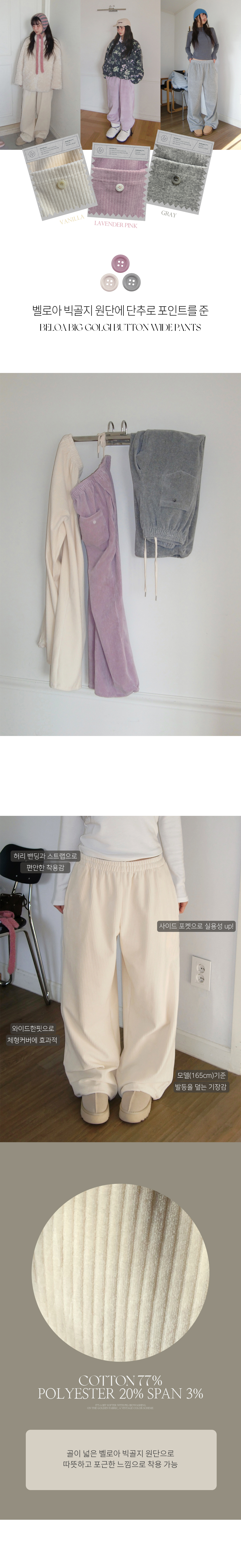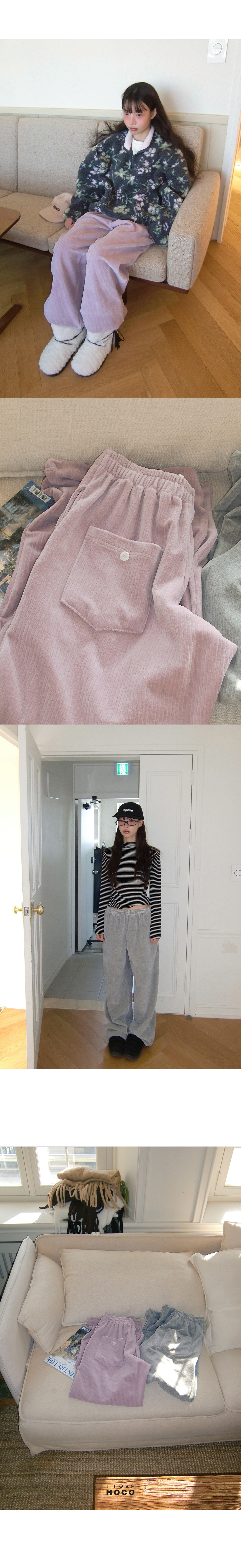 벨로아 빅골지 원단에 힙 포켓 버튼으로 포인트를 준 알럽모코 투웨이 밴딩 와이드팬츠
