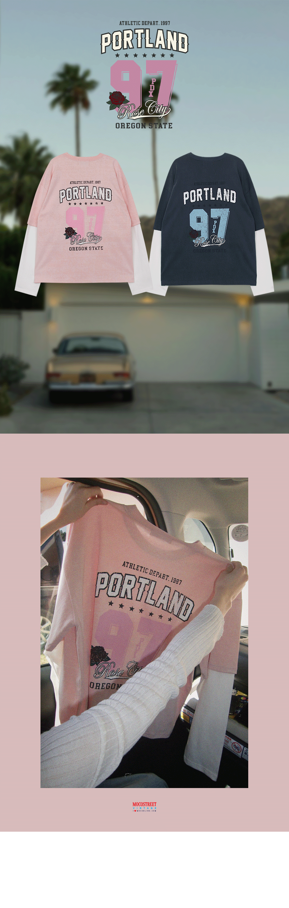 배색 레이어드 디자인의 모코스트릿 영문나염 티셔츠