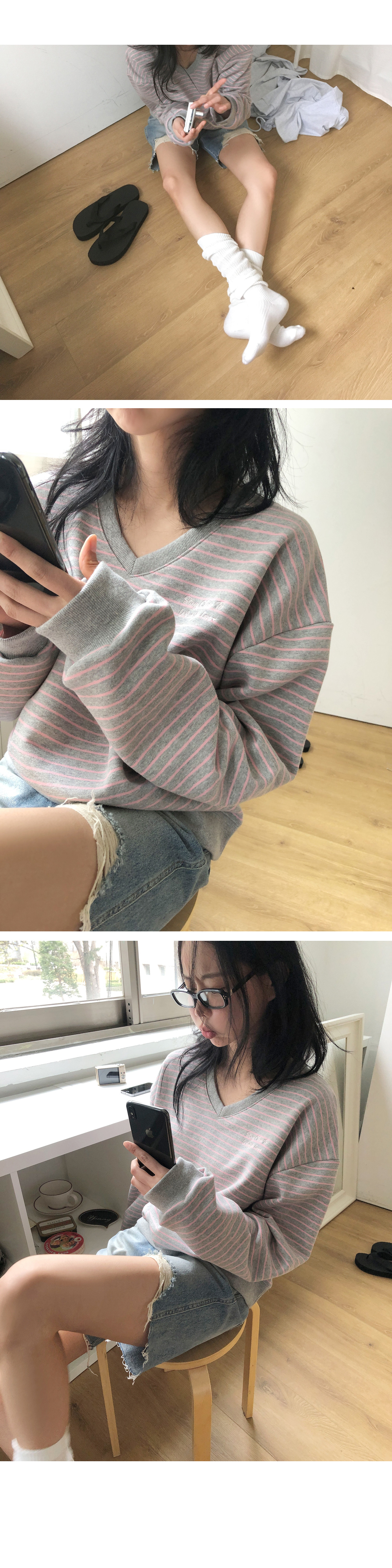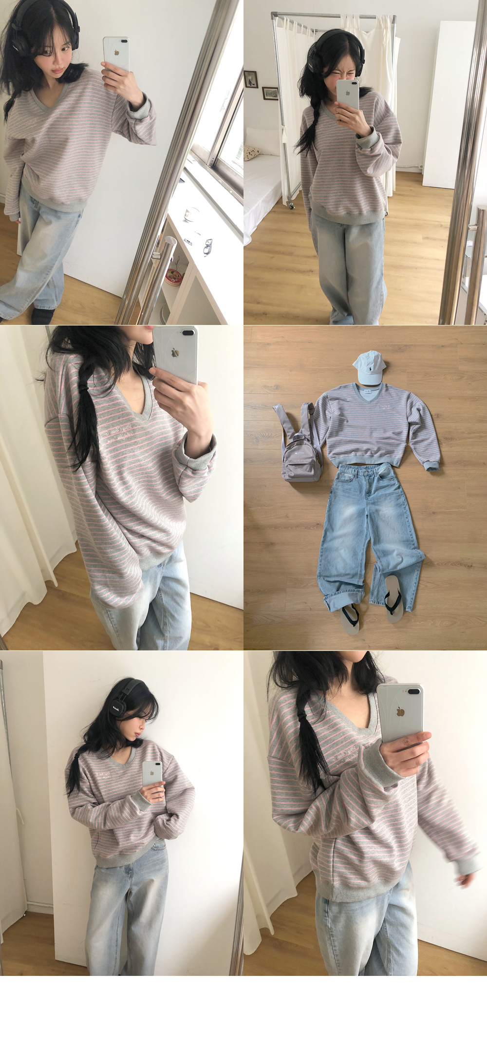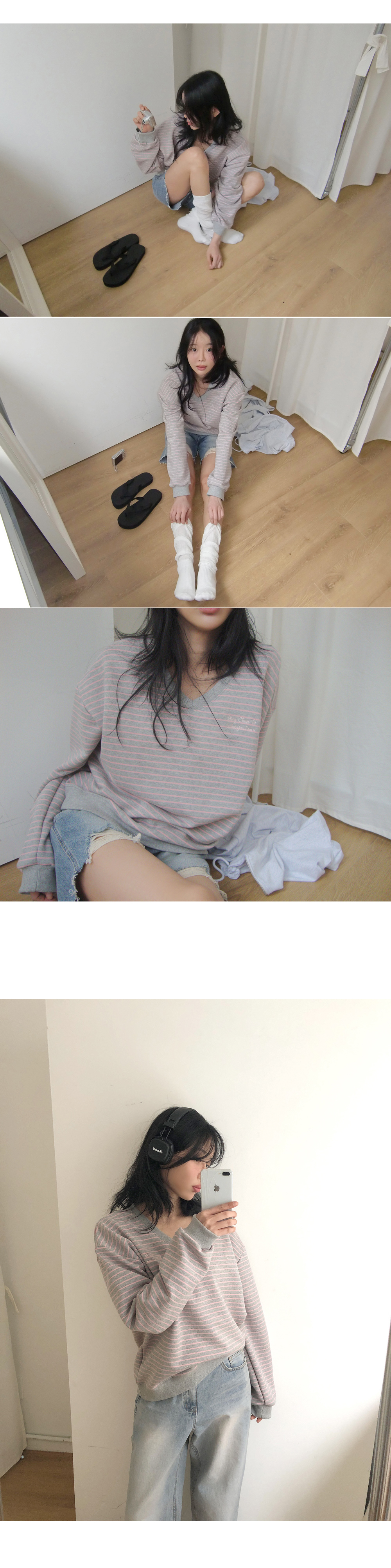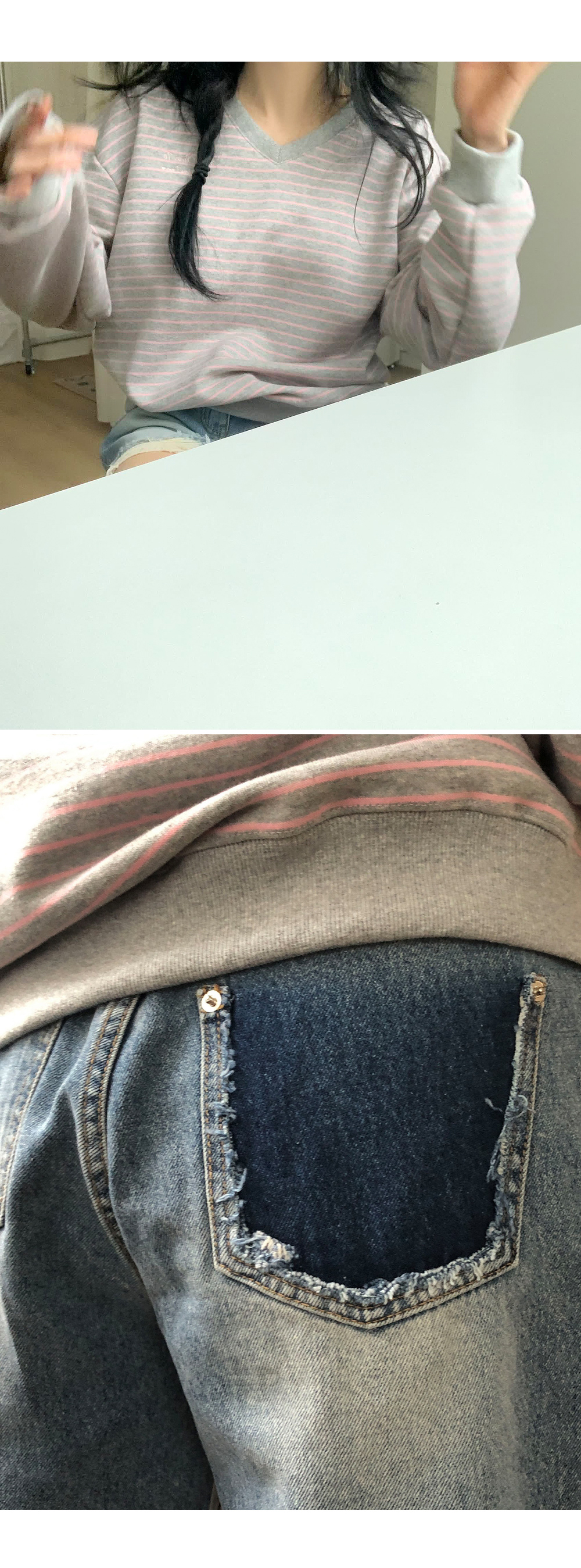 “골반은 평균이며 엉덩이가 작고 하의는 S사이즈를 입어요. 다리가 긴 편이라서 짧 은 기장감의 하의는 M사이즈도 입어요. 상의는 어깨가 있는 편이고 가슴사이즈는75C입니다.”