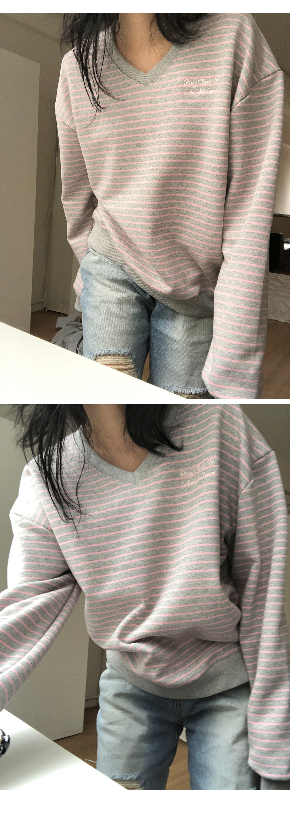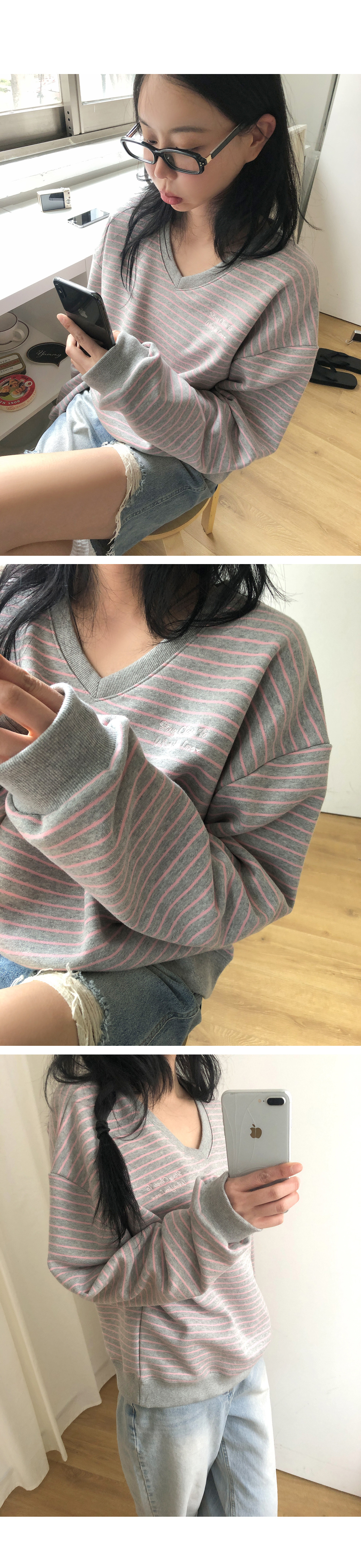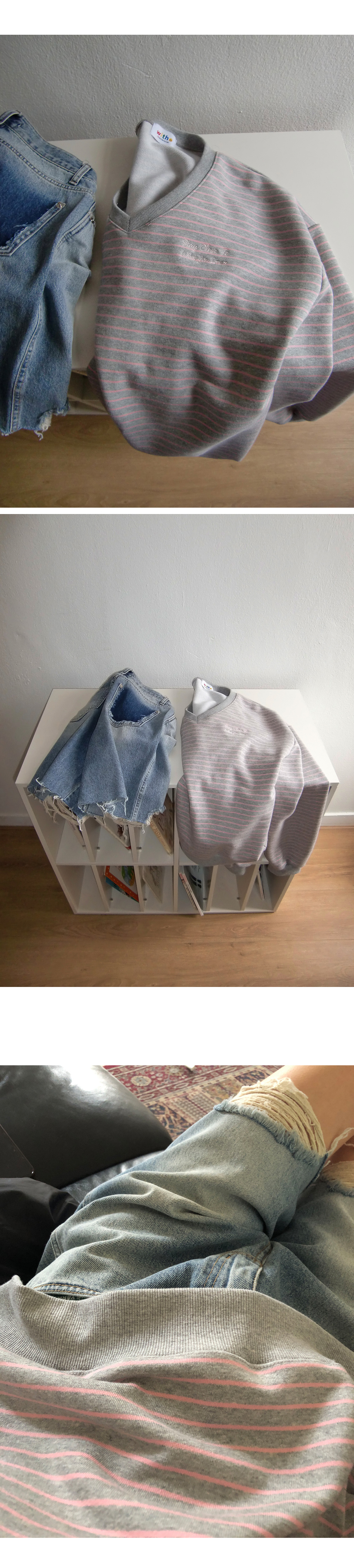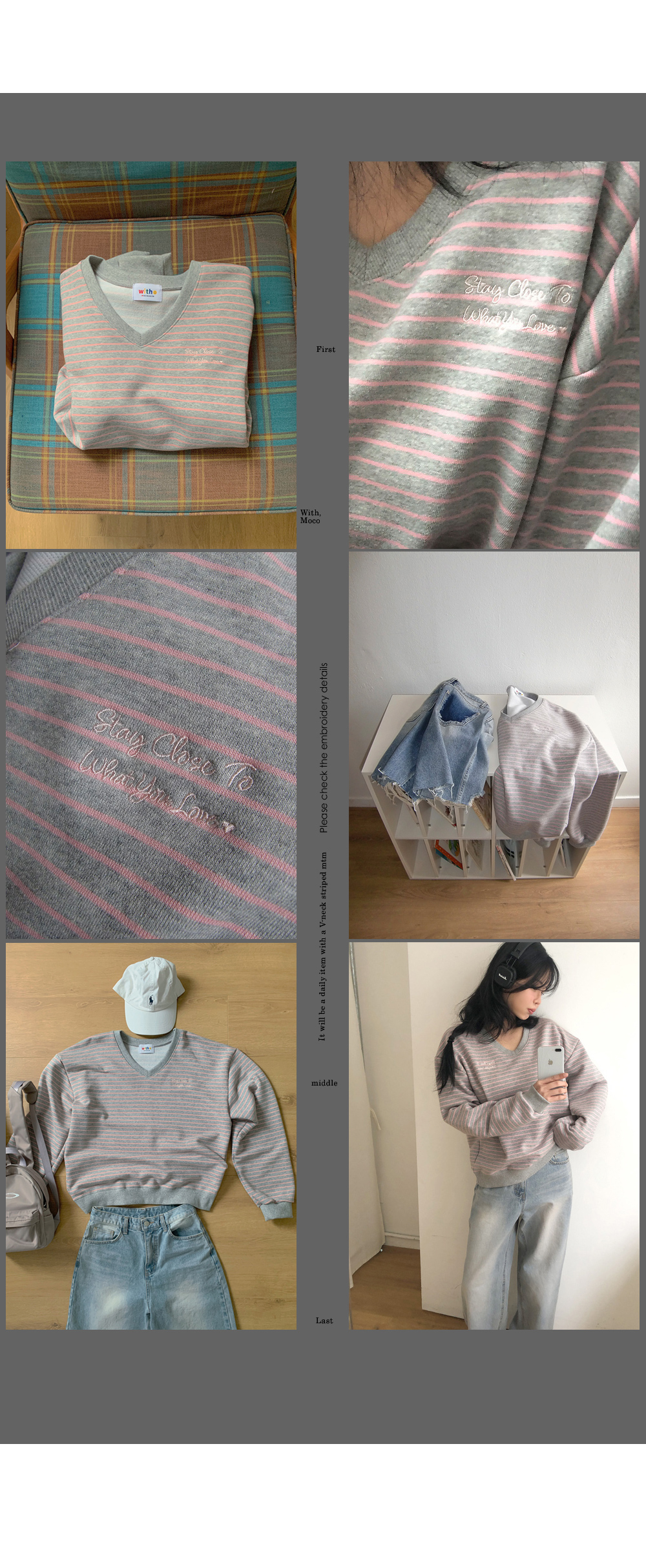 “골반은 평균이며 엉덩이가 작고 하의는 S사이즈를 입어요. 다리가 긴 편이라서 짧 은 기장감의 하의는 M사이즈도 입어요. 상의는 어깨가 있는 편이고 가슴사이즈는75C입니다.”