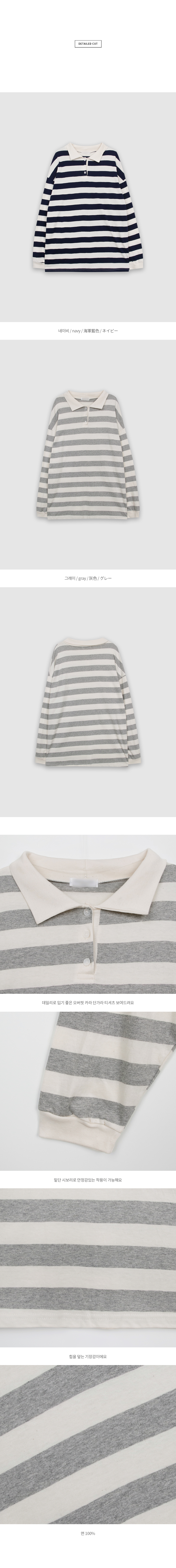 데일리로 입기 좋은 오버핏 카라 단가라 티셔츠 보여드려요