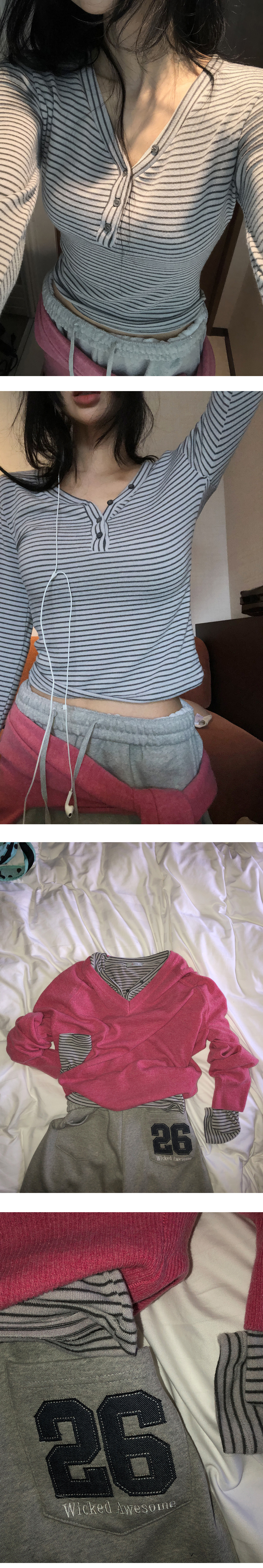 “골반은 평균이며 엉덩이가 작고 하의는 S사이즈를 입어요. 다리가 긴 편이라서 짧 은 기장감의 하의는 M사이즈도 입어요. 상의는 어깨가 있는 편이고 가슴사이즈는75C입니다.”