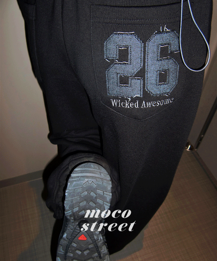 포켓 패치 디테일로 포인트를 준 모코스트릿 투웨이 밴딩팬츠