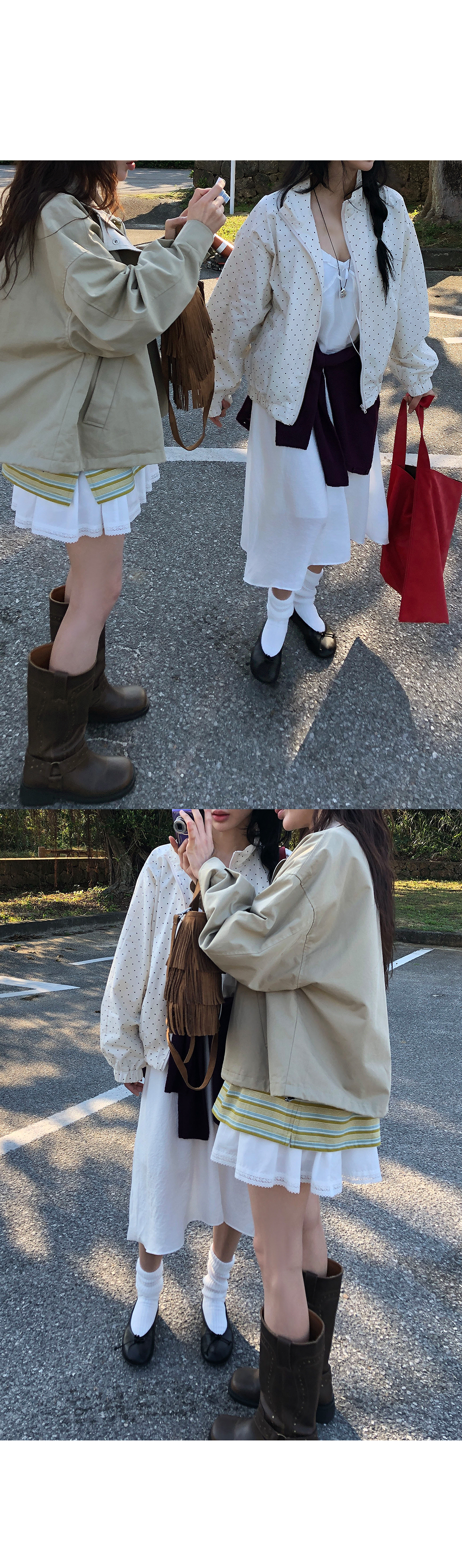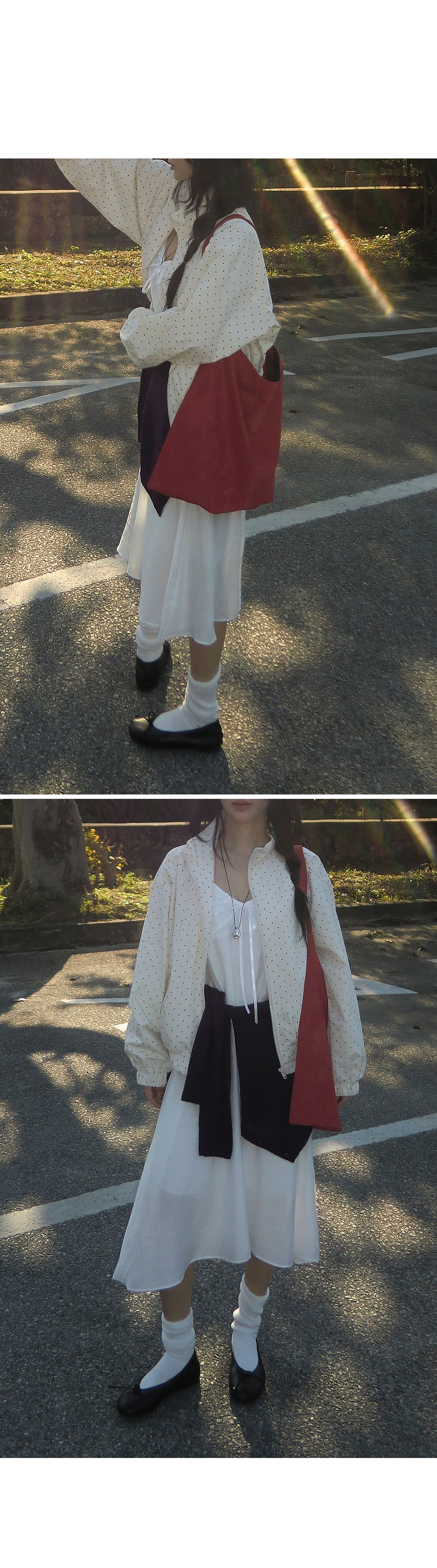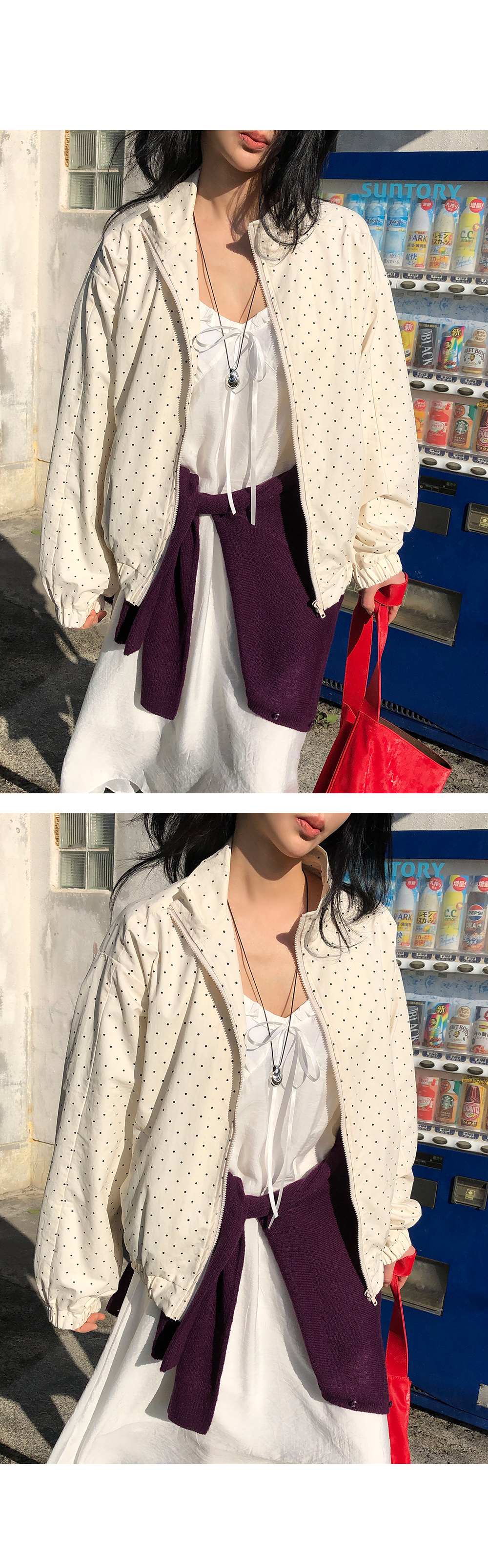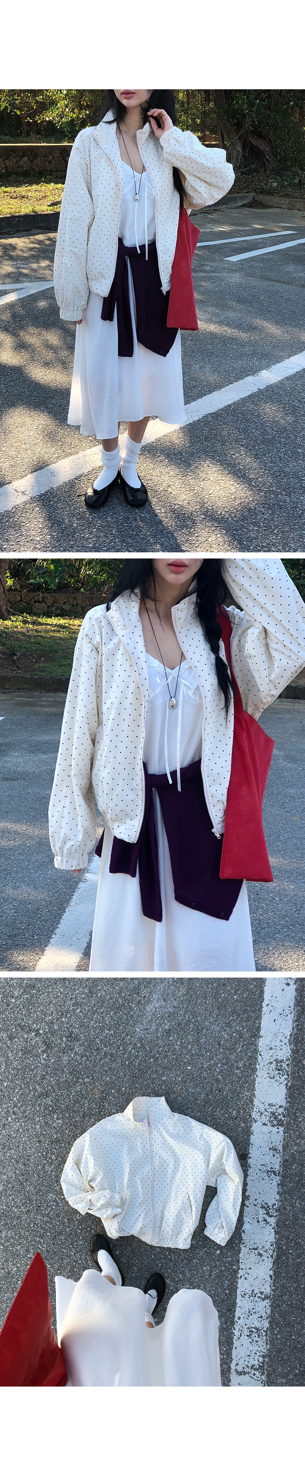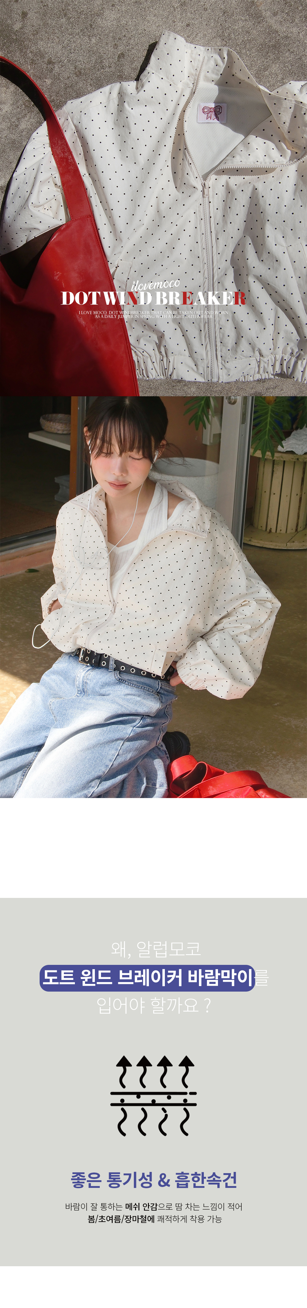 도트 패턴이 포인트가 되는 알럽모코의 바람막이 점퍼
