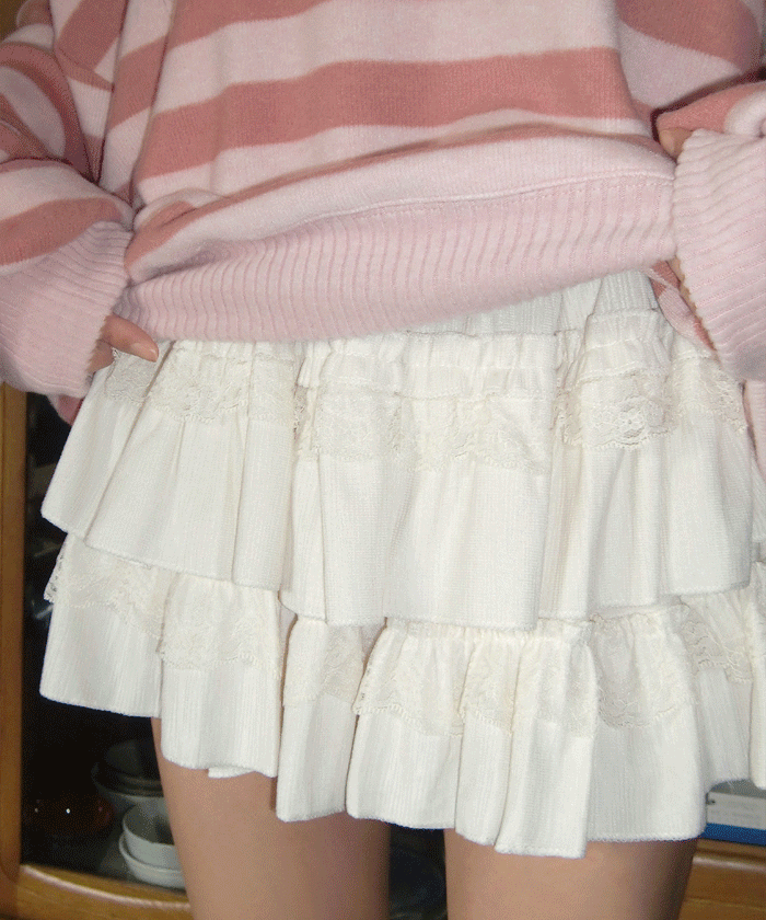 연말스커트추천! 벨벳,레이스 원단의 캉캉 미니스커트.