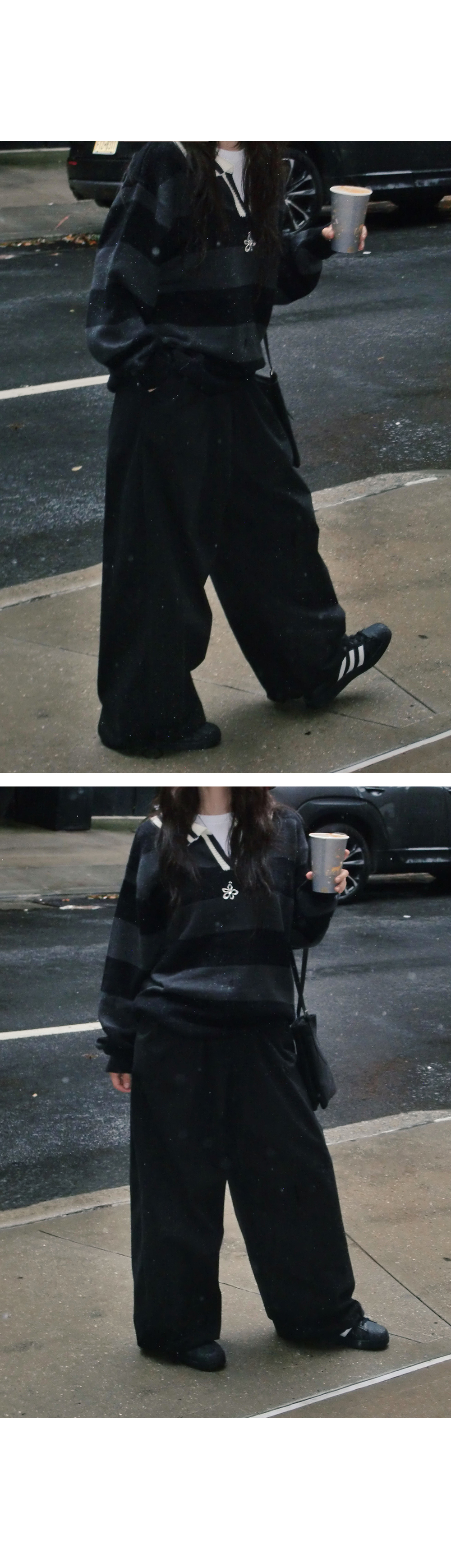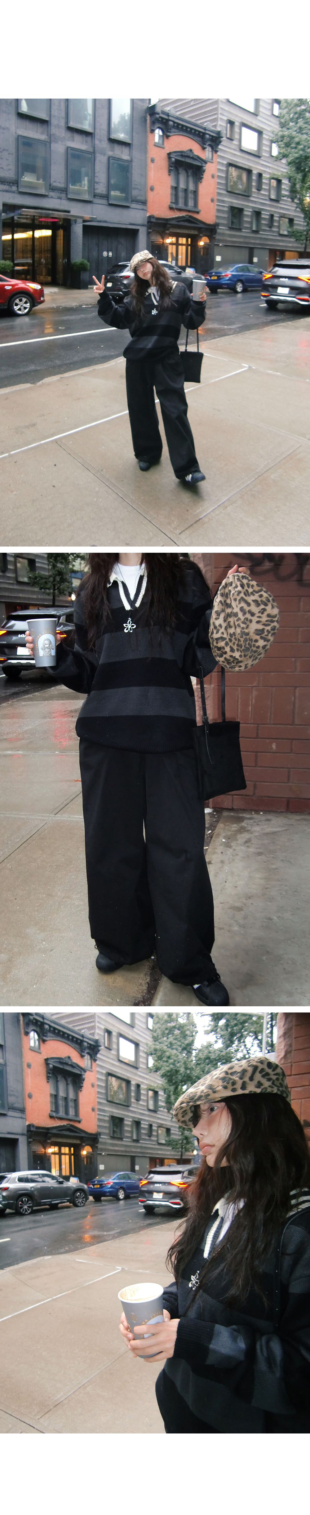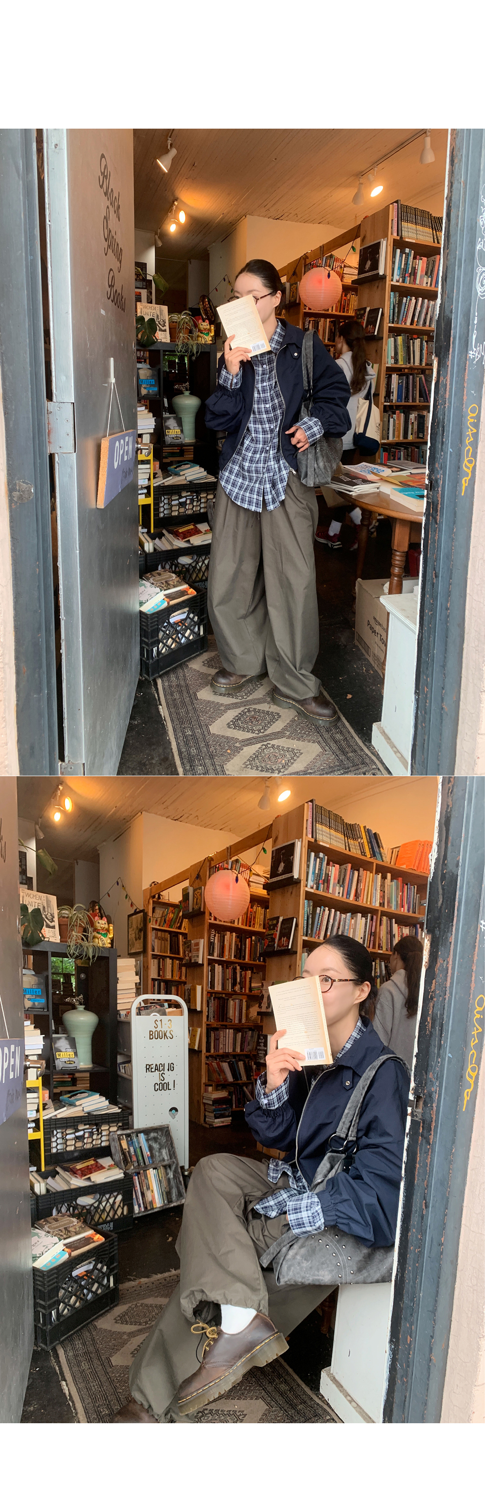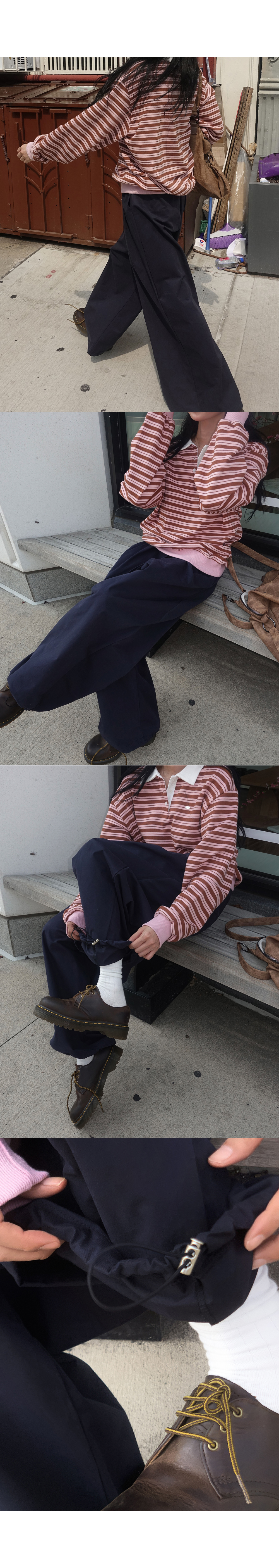 핀턱 라인으로 포인트를 준 알럽모코의 밴딩 와이드팬츠
