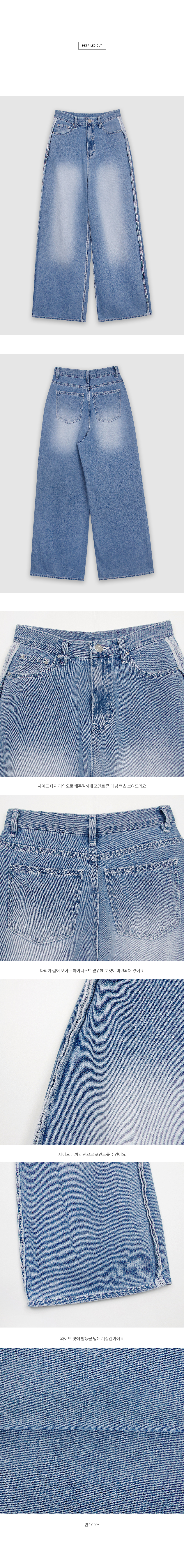 사이드 데끼 라인으로 캐주얼하게 포인트 준 와이드 데님 팬츠