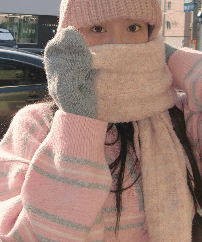 6가지 컬러로 준비한 파스텔 컬러감의 뽀글 목도리
