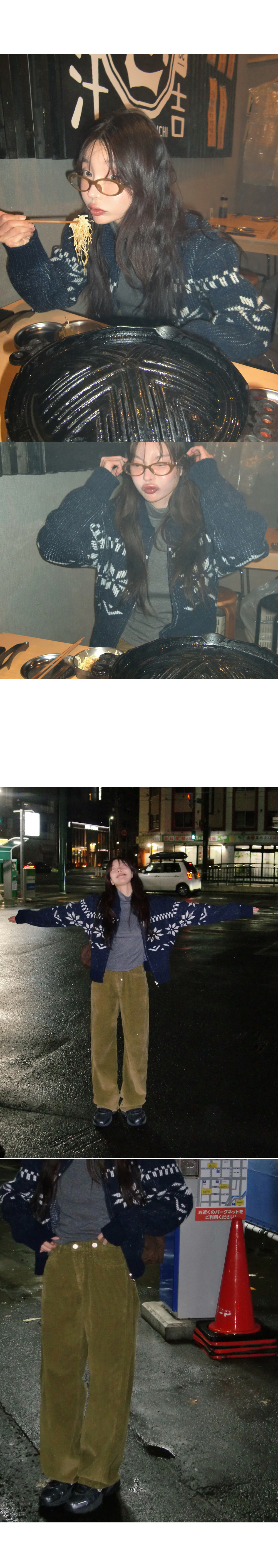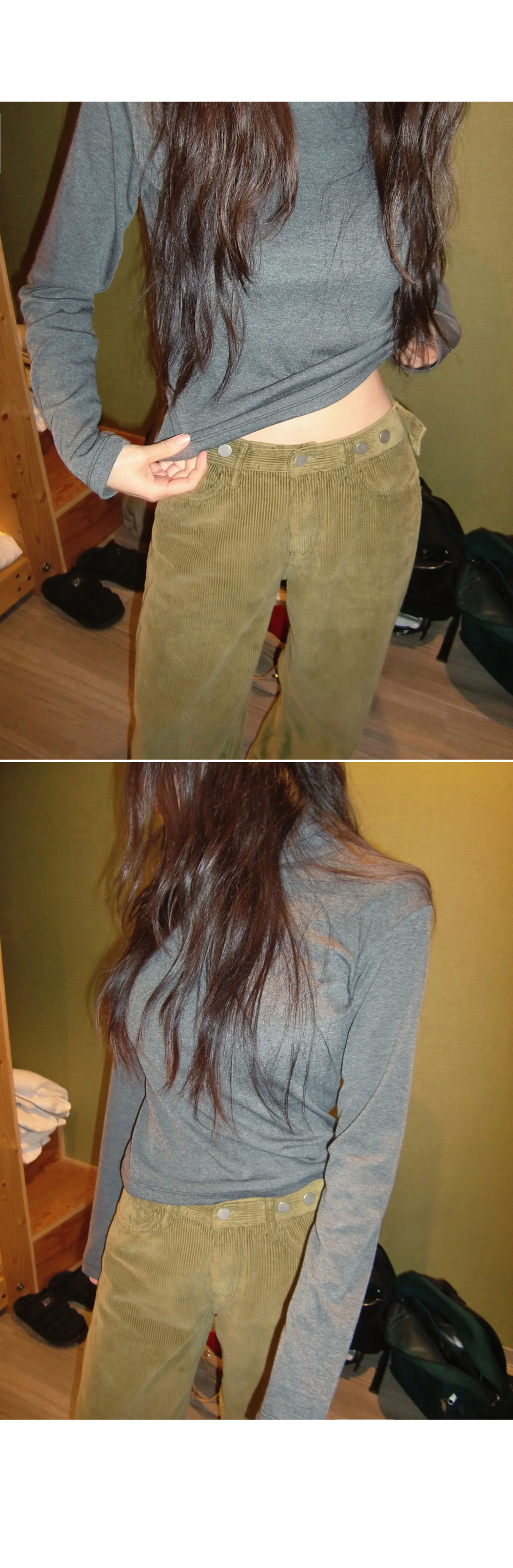 비죠 버튼으로 포인트를 준 코듀로이 소재의 와이드 팬츠 !