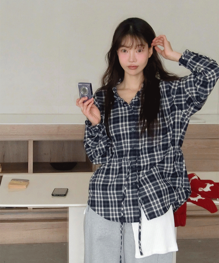 클래식한 체크 패턴의 투웨이 프릴 블라우스