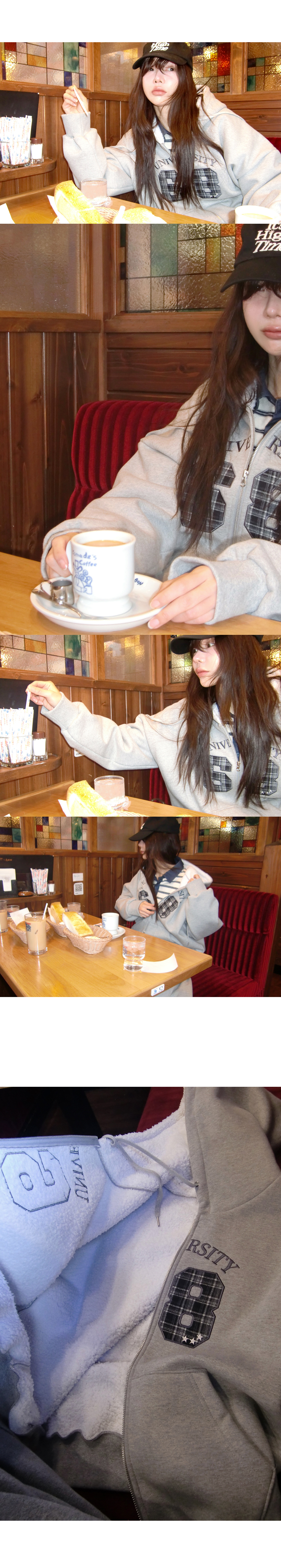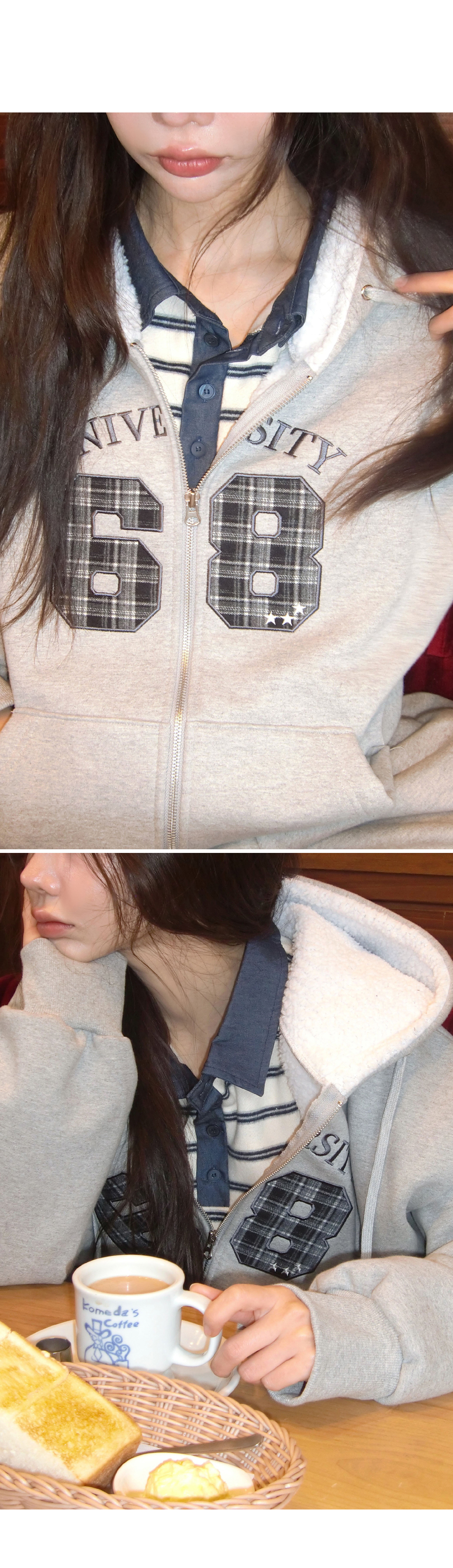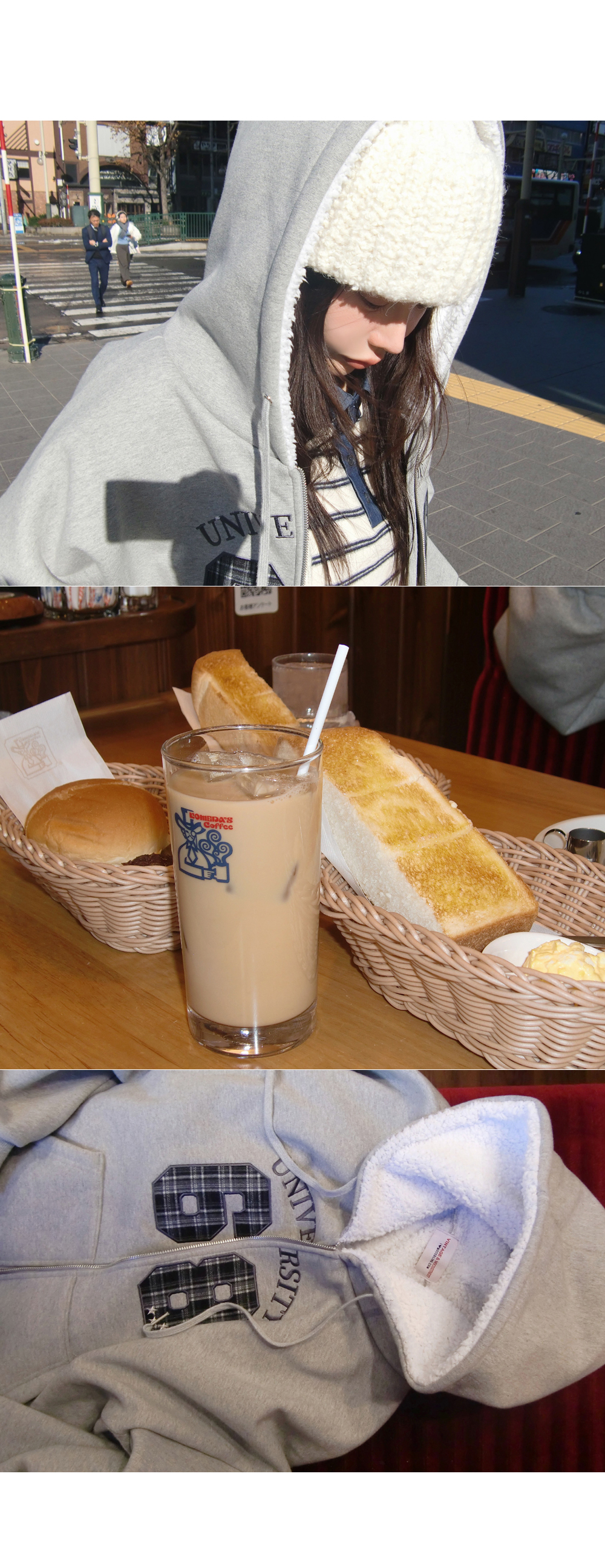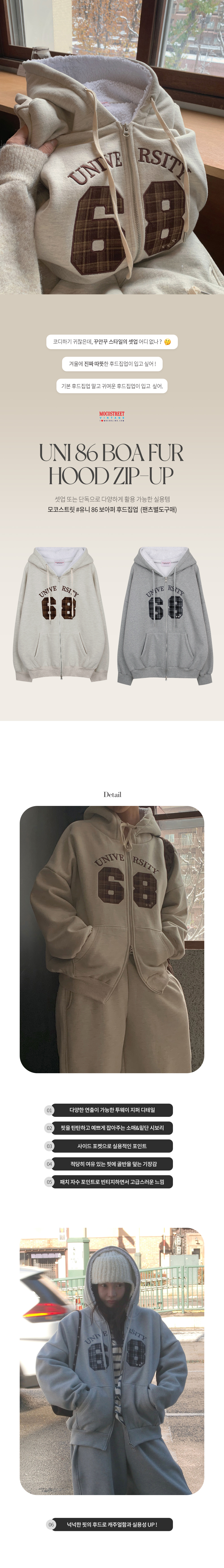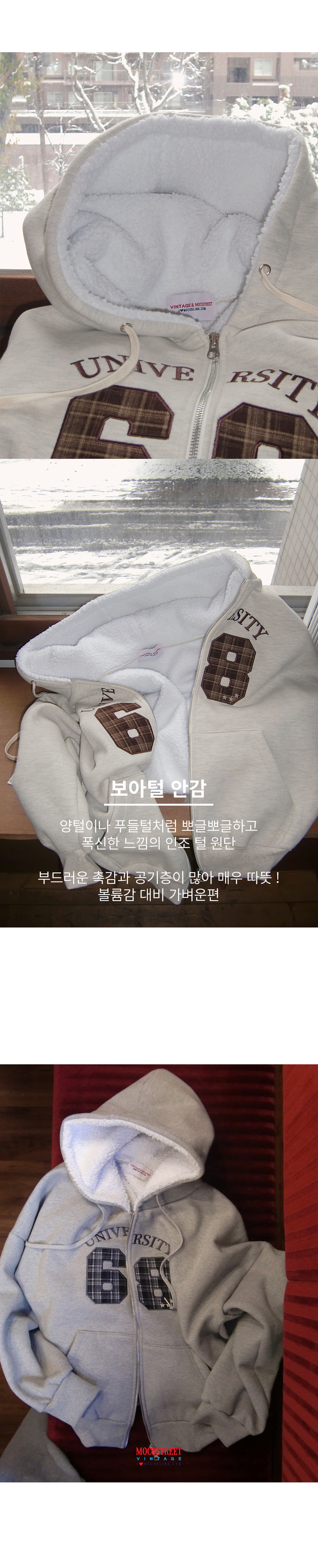 왕따숩 그잡채! 보아털 안감이 덧대어있는 따뜻한 후드집업. 모코스트릿만의 체크자수가 포인트!