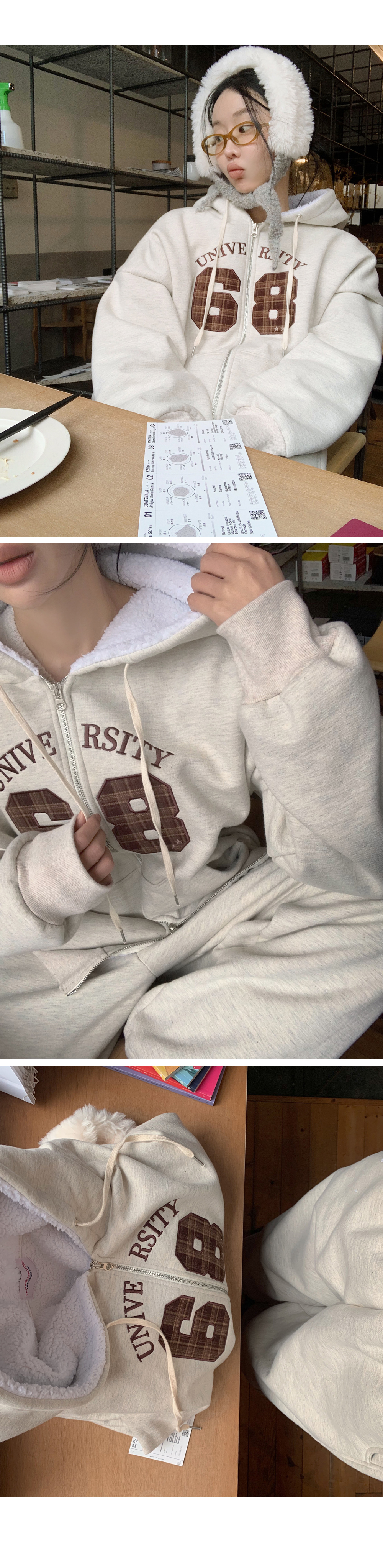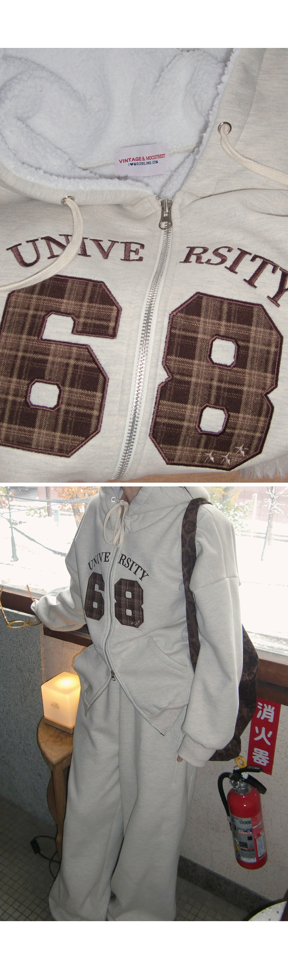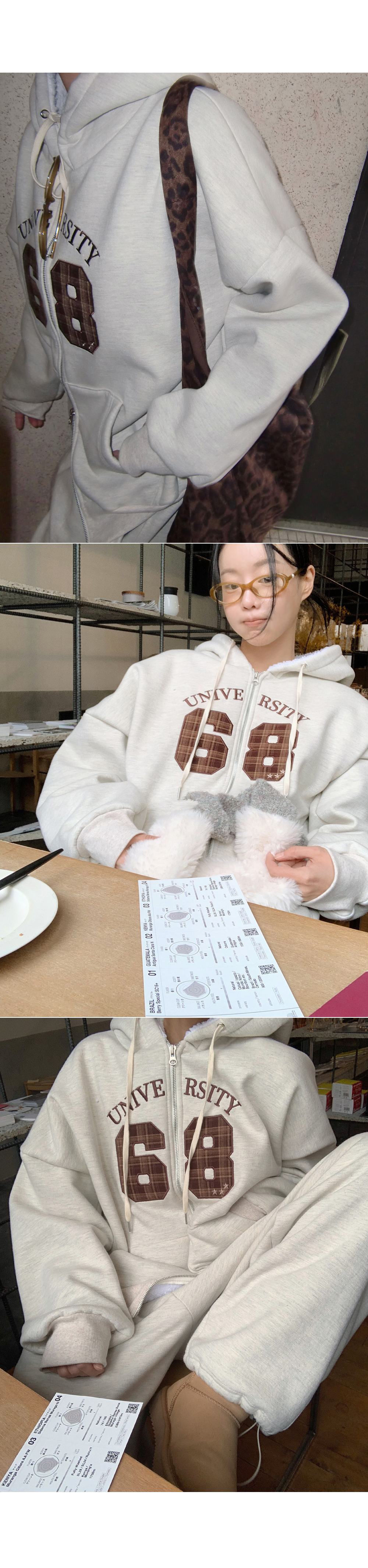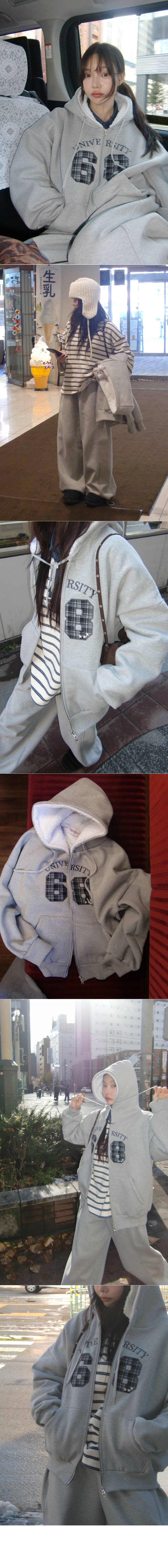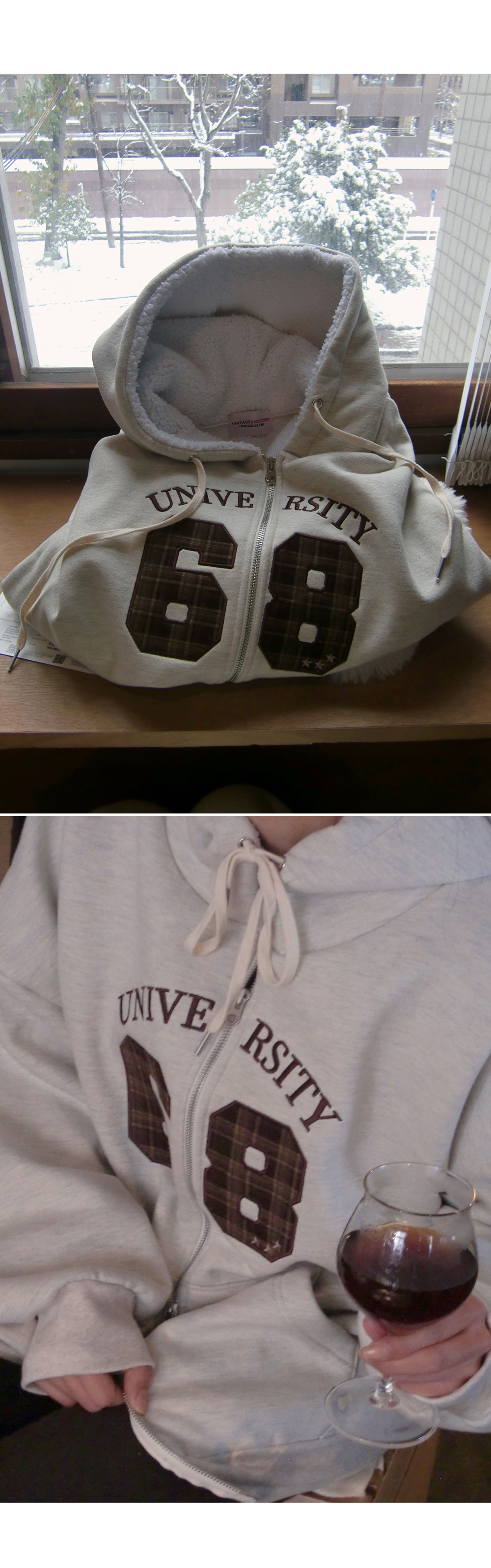 왕따숩 그잡채! 보아털 안감이 덧대어있는 따뜻한 후드집업. 모코스트릿만의 체크자수가 포인트!