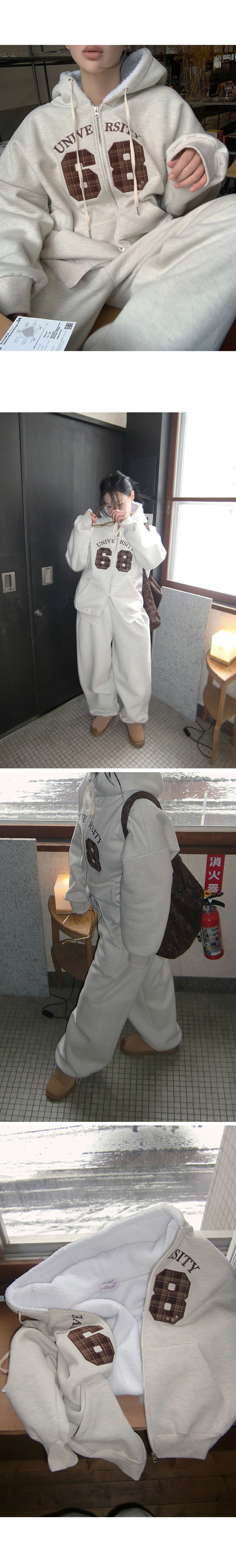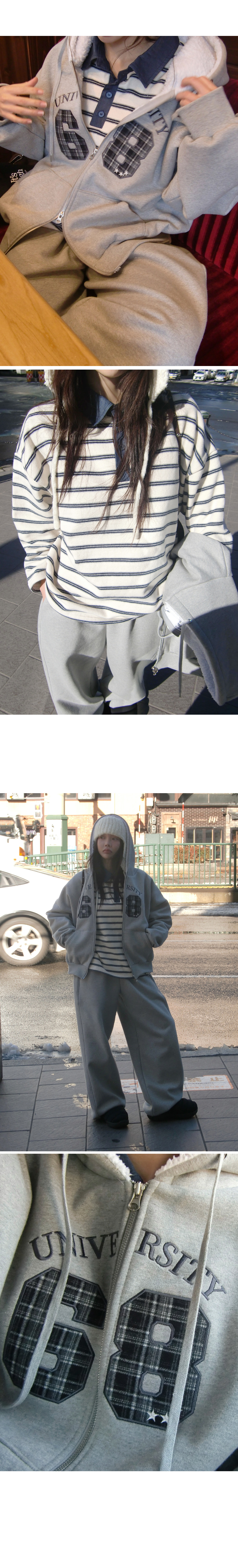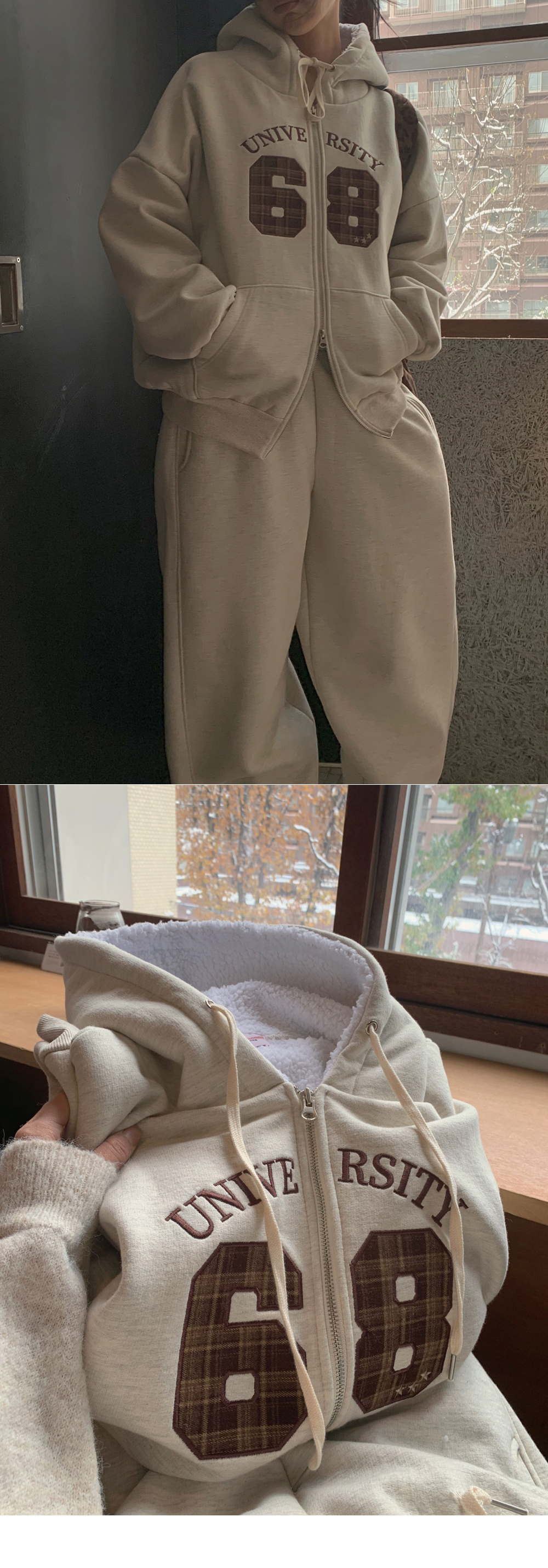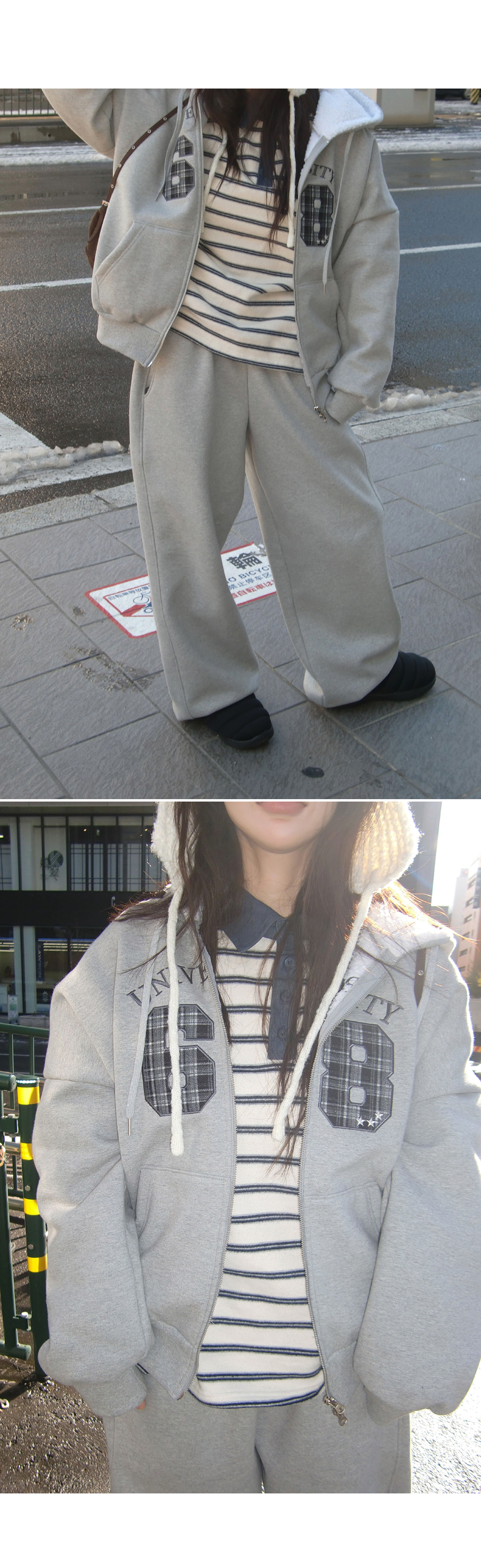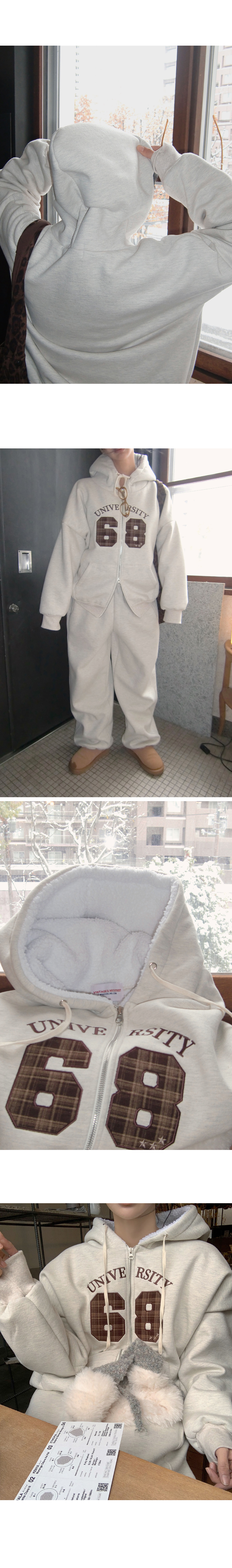 왕따숩 그잡채! 보아털 안감이 덧대어있는 따뜻한 후드집업. 모코스트릿만의 체크자수가 포인트!