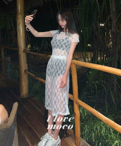 빈티지하고 로맨틱한 시스루 레이스 원단으로 제작한 알럽모코의 밴딩 레이어드 레이스 스커트