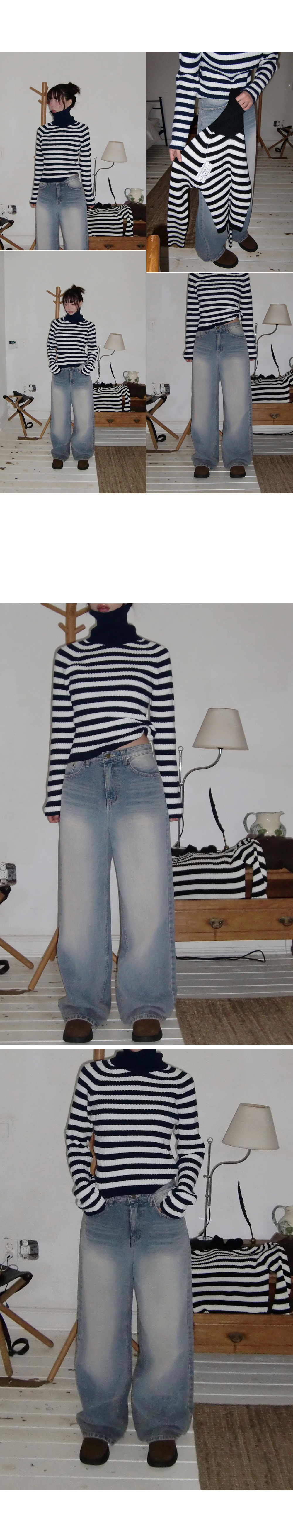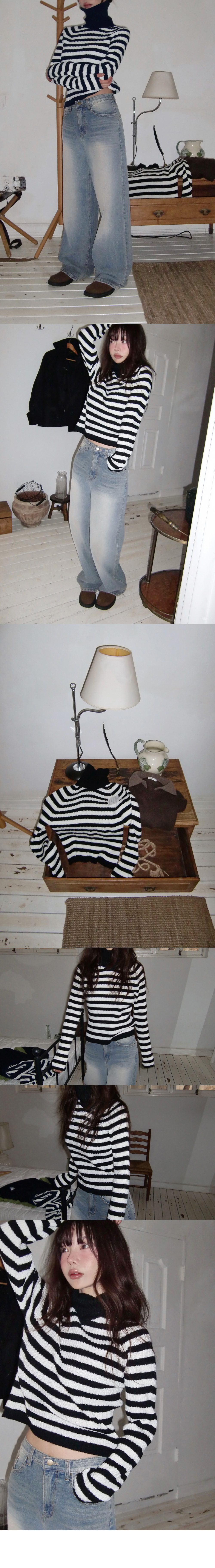 스트라이프 패턴의 홀가먼트 골지 폴라 니트
