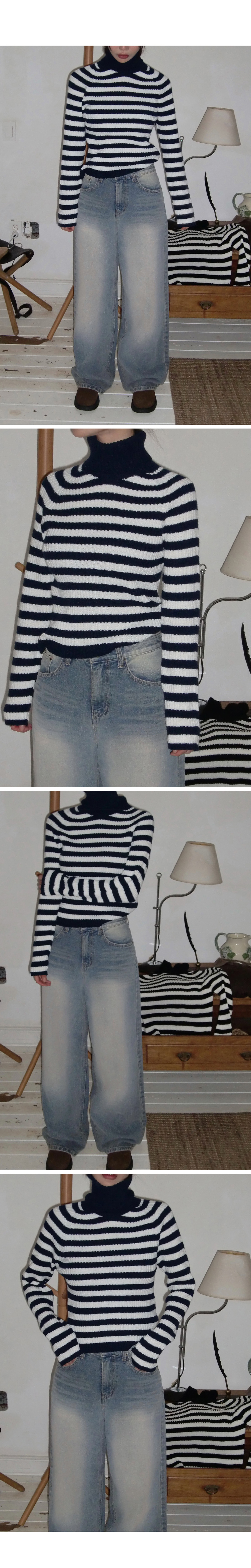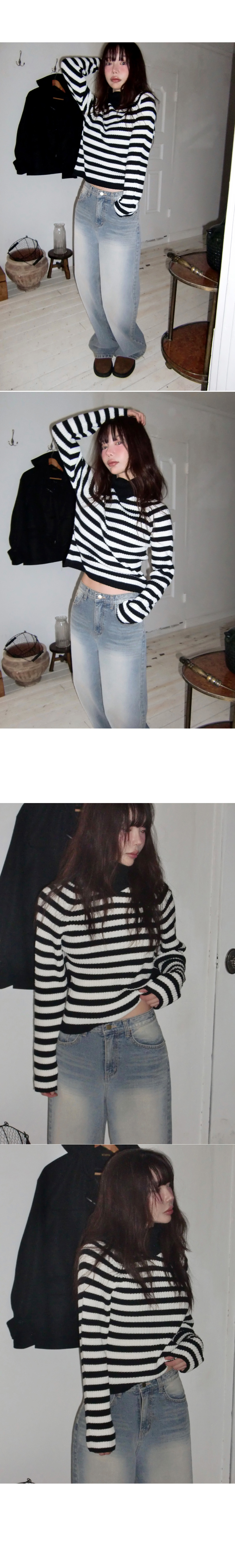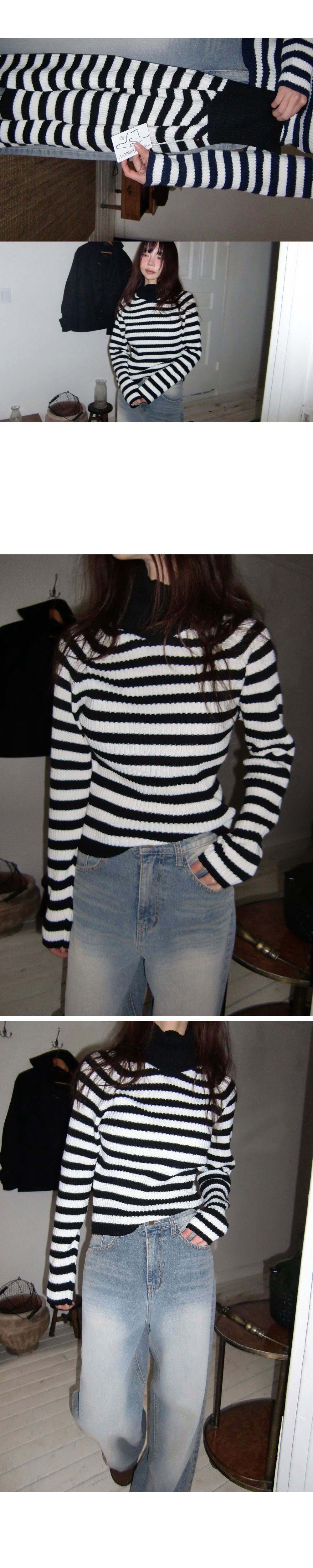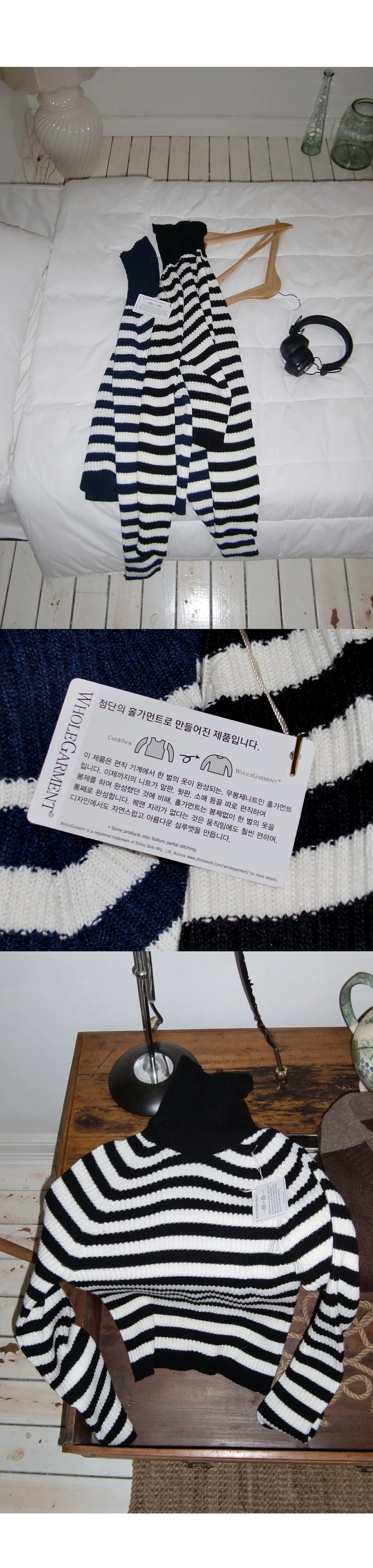 # 스트라이프 패턴의 홀가먼트 골지 폴라 니트