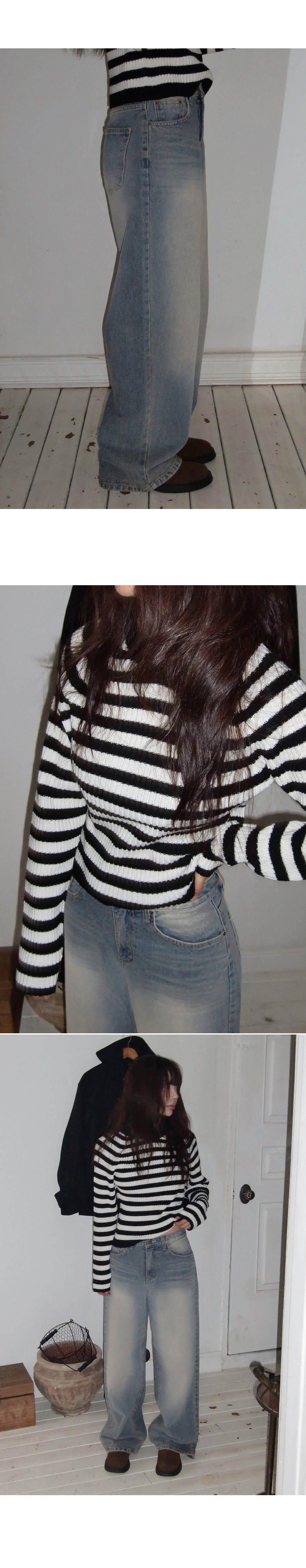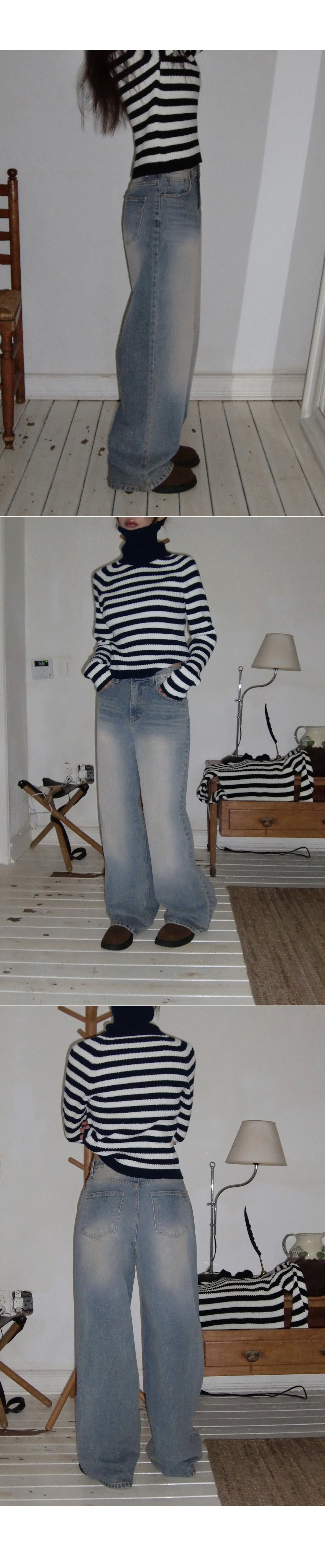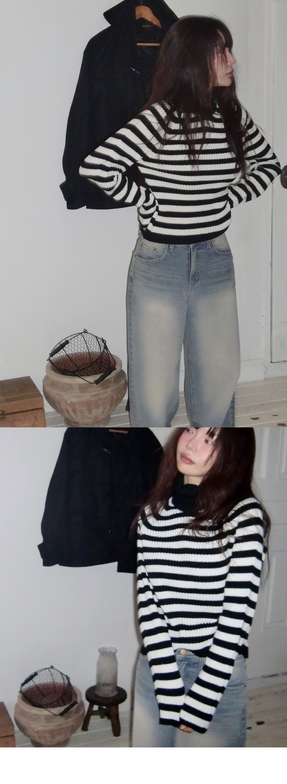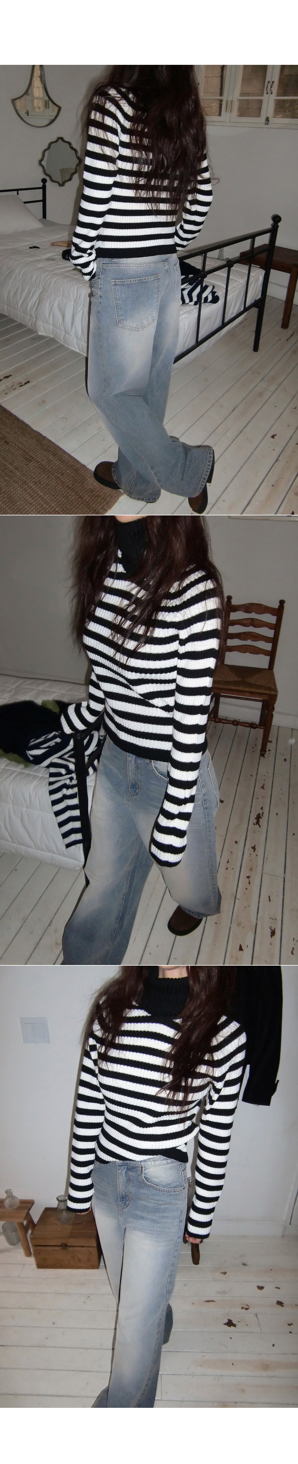 # 스트라이프 패턴의 홀가먼트 골지 폴라 니트