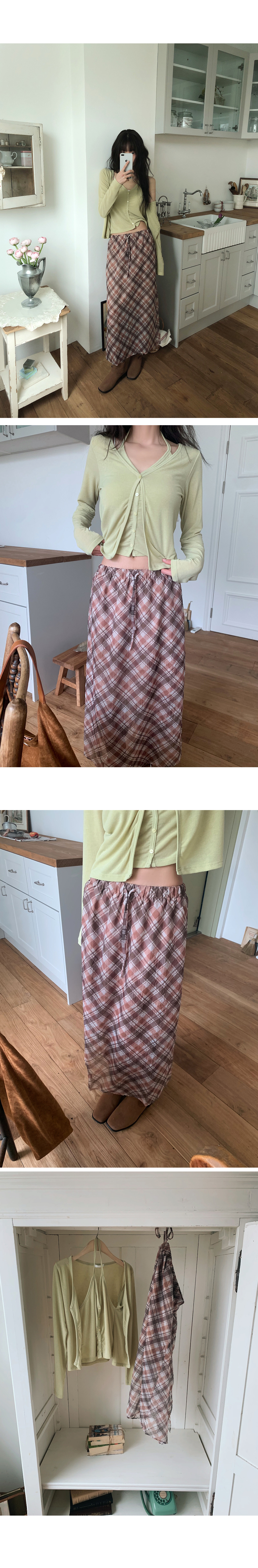 빈티지한 무드에 맥시한 기장감의 체크 스커트