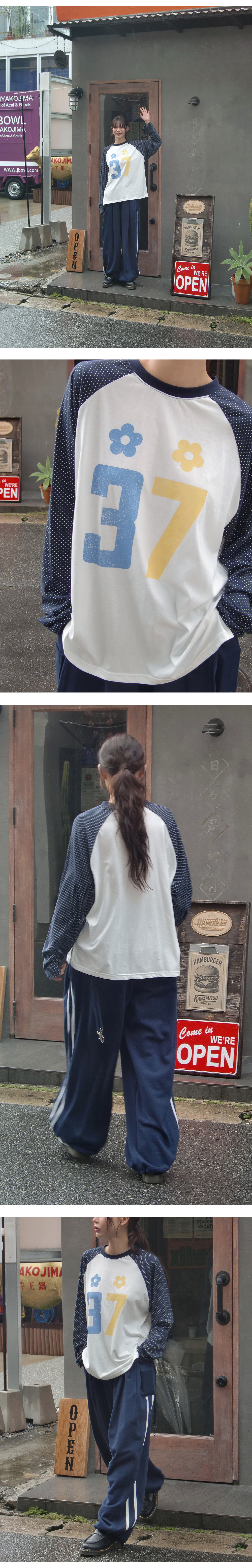 키치한 무드의 모코스트릿 도트 배색 나염 티셔츠
