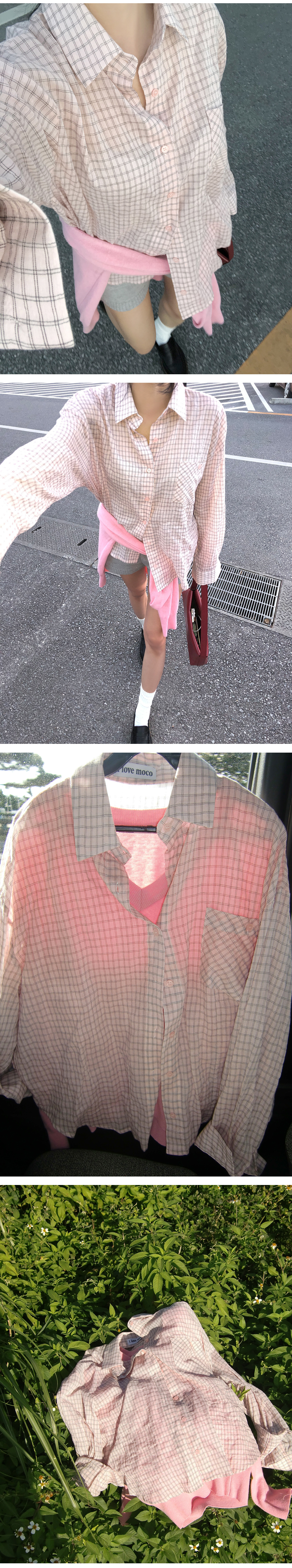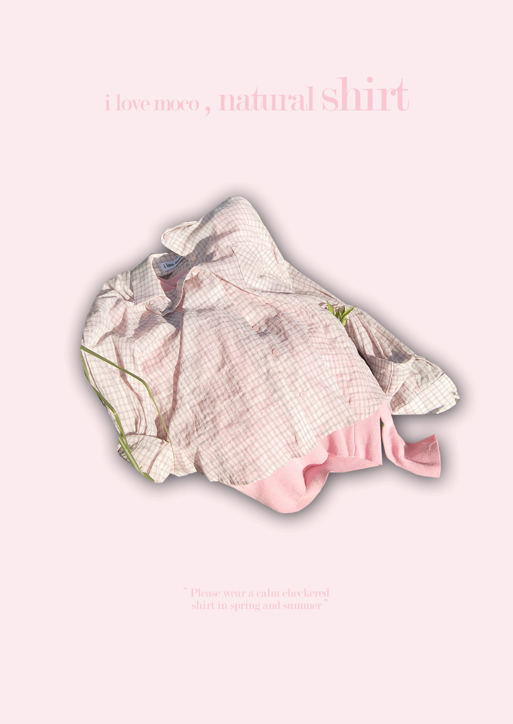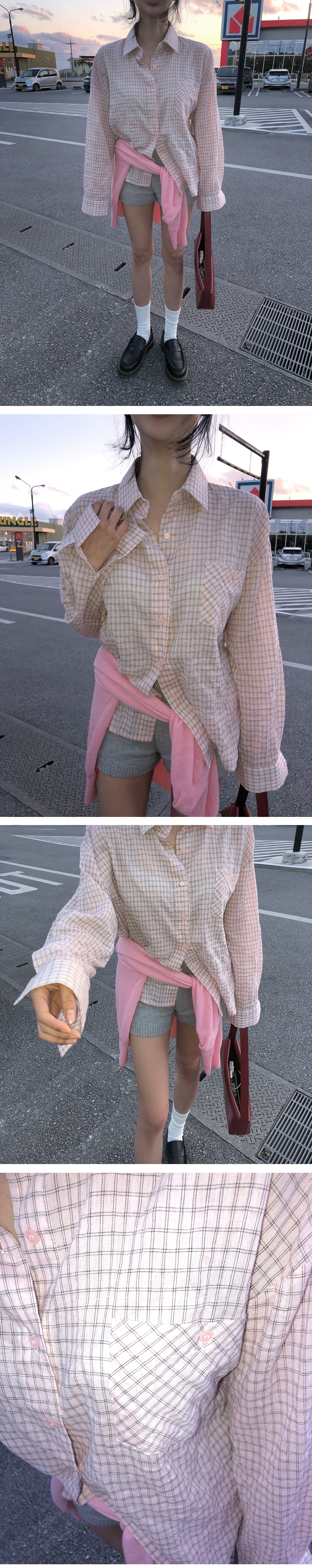 딸기 우유같은 파스텔 핑크 컬러감의 가볍고 편안하게 걸치기 좋은 코지한 분위기의 알럽모코 루즈핏 체크셔츠