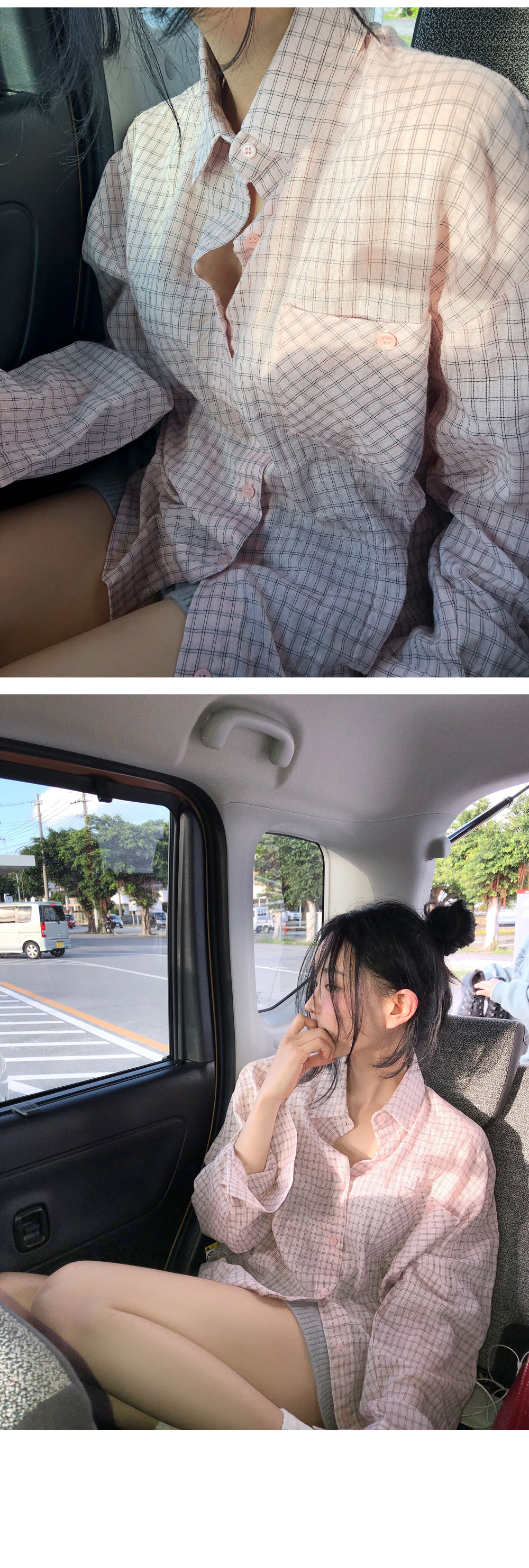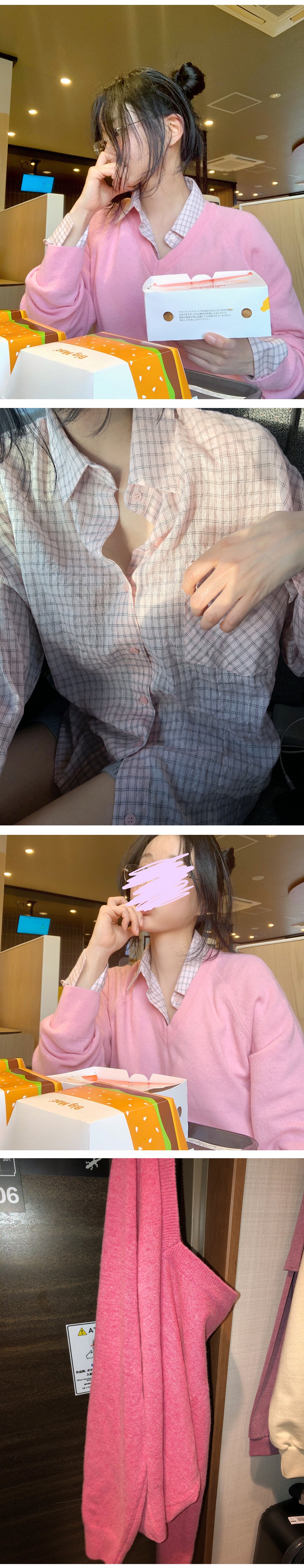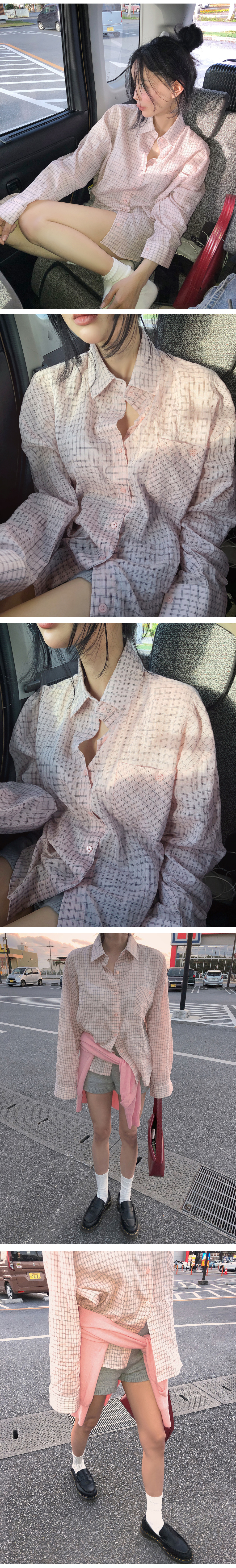 딸기 우유같은 파스텔 핑크 컬러감의 가볍고 편안하게 걸치기 좋은 코지한 분위기의 알럽모코 루즈핏 체크셔츠