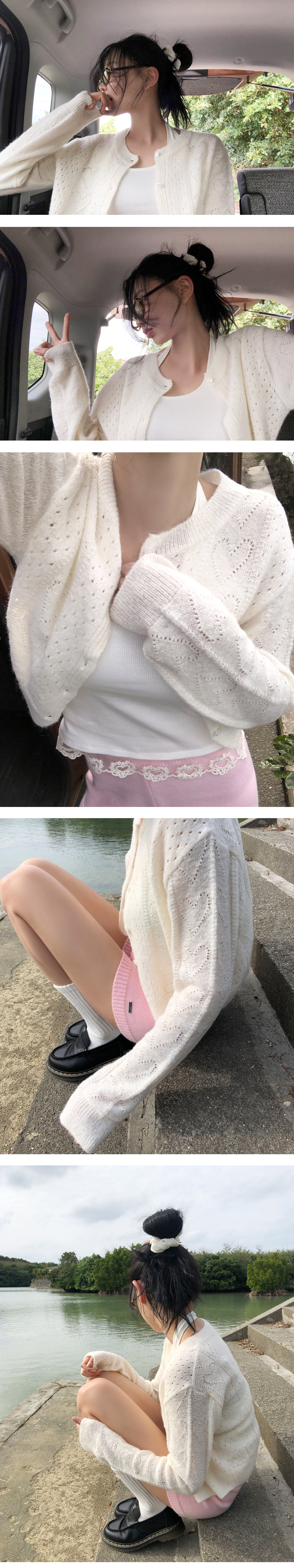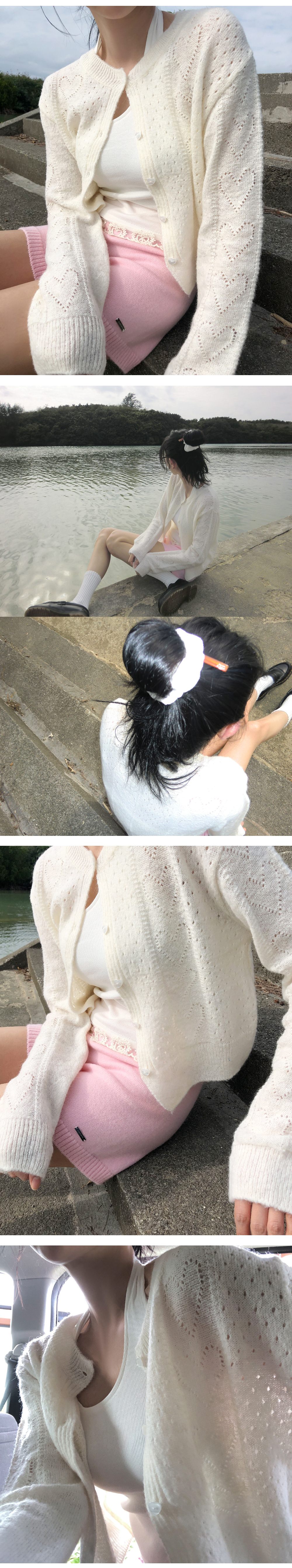 밋밋한 룩에 포인트 주기 좋은 하트 펀칭 가디건